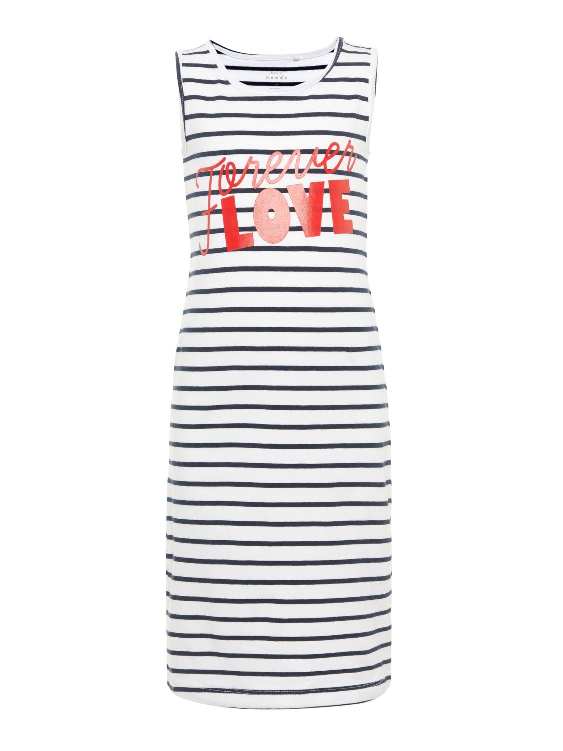 - Langes Kleid für Mädchen gestreift mit Grafikprint auf der Brust