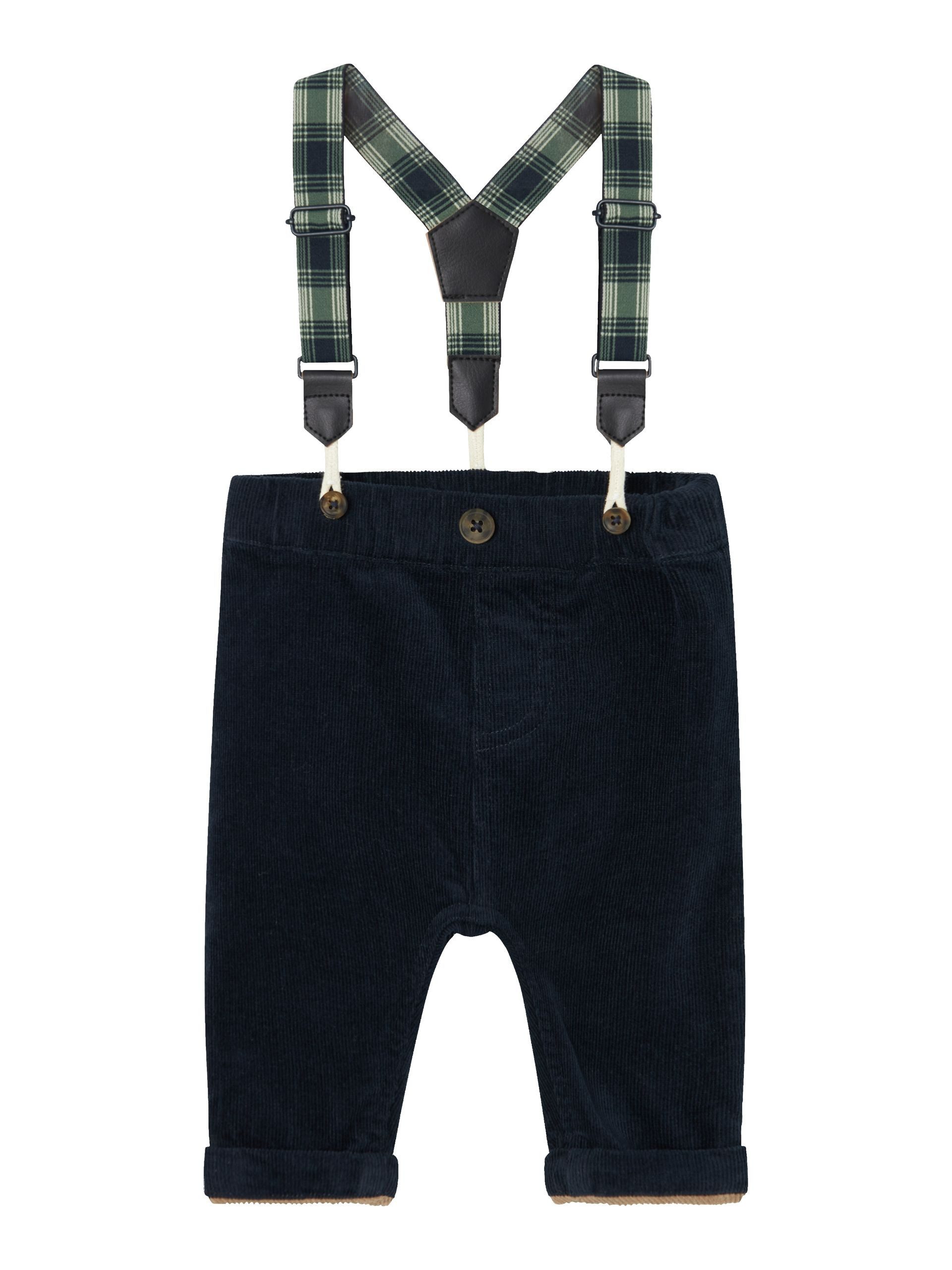 Die NAME IT Baby Jungen Cordhose kombiniert Stil und Funktionalität für die Kleinsten. Gefertigt aus weichem, glänzendem Cord, bietet sie hohen Tragekomfort und ist sanft zur Babyhaut. Ausgestattet mit elastischer Taille, verstellbarem Bund, abnehmbaren und verstellbaren Hosenträgern sowie Gesäßtaschen, bietet die Hose viel Flexibilität und Bewegungsfreiheit. Der Baggy Fit sorgt für Komfort während des aktiven Alltags eines Babys. Verfügbar in dunkelblau und beige, sind diese Hosen vielseitig kombinierbar und ideal für alltägliche Anlässe sowie besondere Ereignisse.
