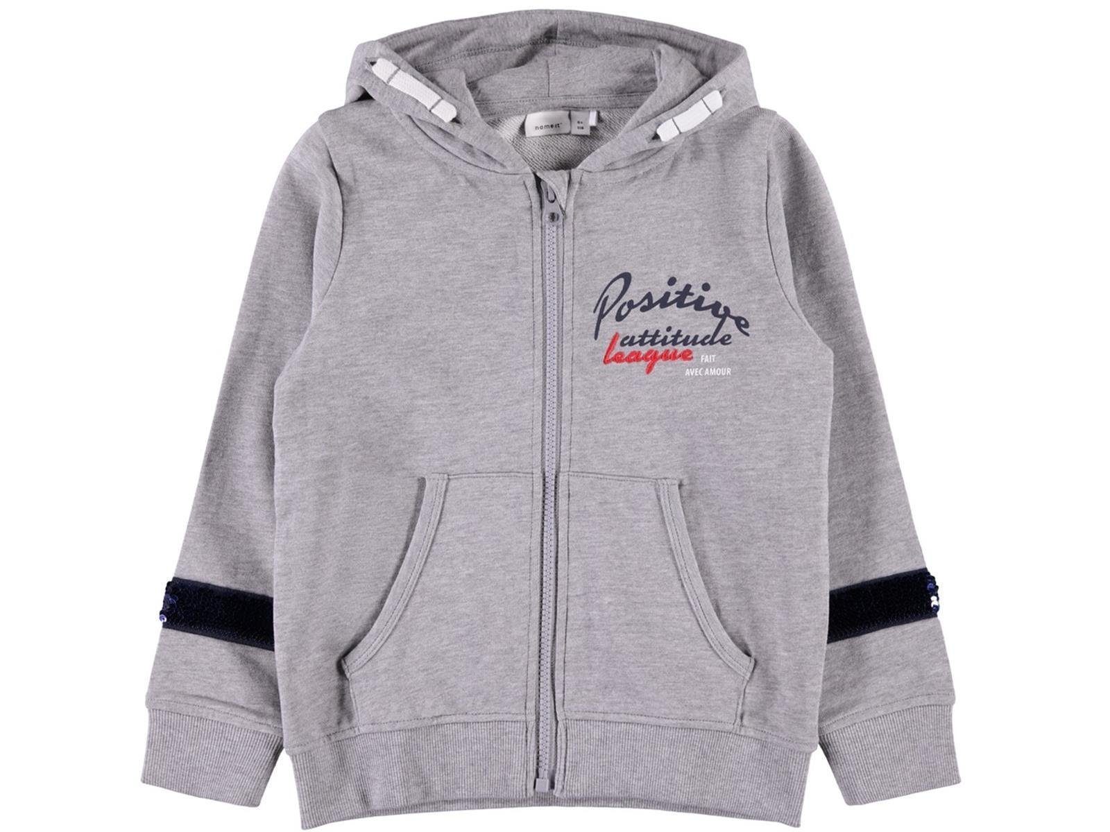 - weiche Baumwoll-Hoodie - vorn mit Reißverschluss und seitlichen Taschen - auf der Brust mit Print - an den Ärmeln mit kleine Paillettenbesatz - eingesetzte Kordeln an der Kapuze