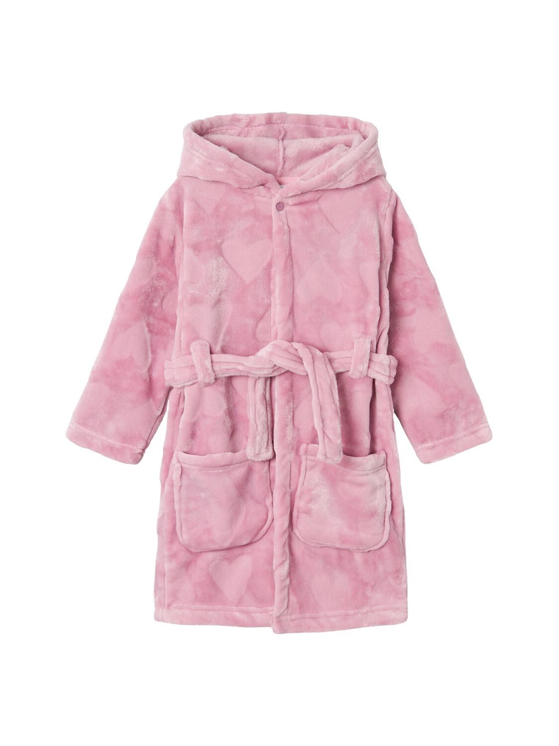 Der Name it NMFROSE MORNING ROBE Bademantel für Mädchen kombiniert Stil mit Эко-товары und Komfort. Hergestellt aus 100% recyceltem Polyester, bietet dieser Bademantel ein weiches Tragegefühl und ist ideal für den Einsatz zu Hause, besonders nach dem Baden, am Morgen oder bei Übernachtungspartys. Er zeichnet sich durch ein ansprechendes Herzchenmuster aus, das in zarten Rosa- oder frischen Lilatönen erhältlich ist. Der Bademantel ist zudem mit einer Kapuze, tiefen Taschen und einem bequemen Bindegürtel ausgestattet, was ihn sowohl praktisch als auch modisch macht.