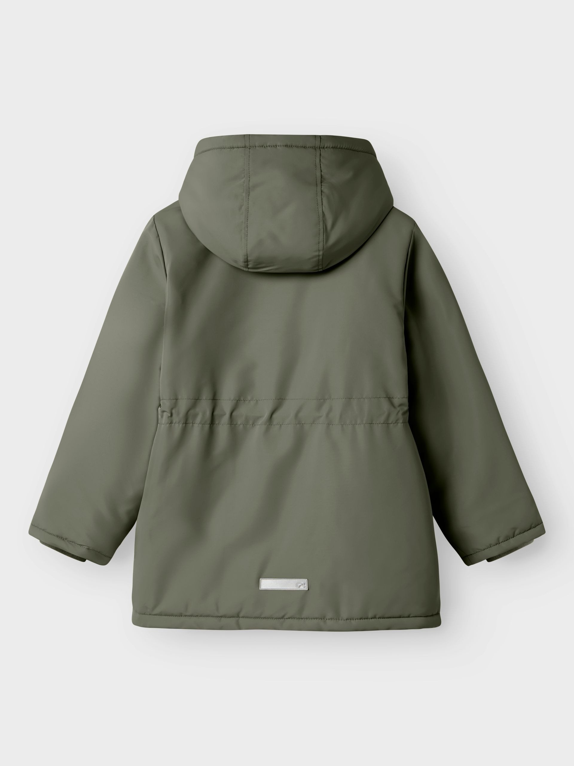 Kreiere mit hochwertigen Styles für jeden Tag das perfekte Outfit für dein Kind und einen trendigen Wohlfühllook. NAME IT stellt seit 1986 hochwertige Outerwear mit besonderem Fokus auf Funktionalität und Sicherheit her. Wir folgen den aktuellen Modetrends und setzen diese in bequeme Jacken und Outdoor-Bekleidung für Kinder um. - Produkttyp : Jacke - Hals : Abnehmbare Kapuze - Ärmel : Langarm - Manschetten : Gerippte Ärmelbündchen - Verschluss : Reißverschluss - Taschen : Taschen vorn - Futter : Ein Innenfutter aus Fleece am Oberkörper und in der Kapuze sorgt für Wärme und Weichheit - Fütterung : Medium Isolierung - Details : Dekorative, reflektierende Details, Abnehmbare Kapuze für Sicherheit, Abzeichen, Ein Kinnschutz am Reißverschluss verhindert das Einklemmen der Haut, Elastisches Taille - Waschen : Die ECO wasserabweisende Behandlung garantiert, dass keine fluorhaltigen Substanzen zur Imprägnierung des Produkts verwendet wurden, OHNE PFAS – in unseren Produkten werden keine Fluorverbindungen verwendet