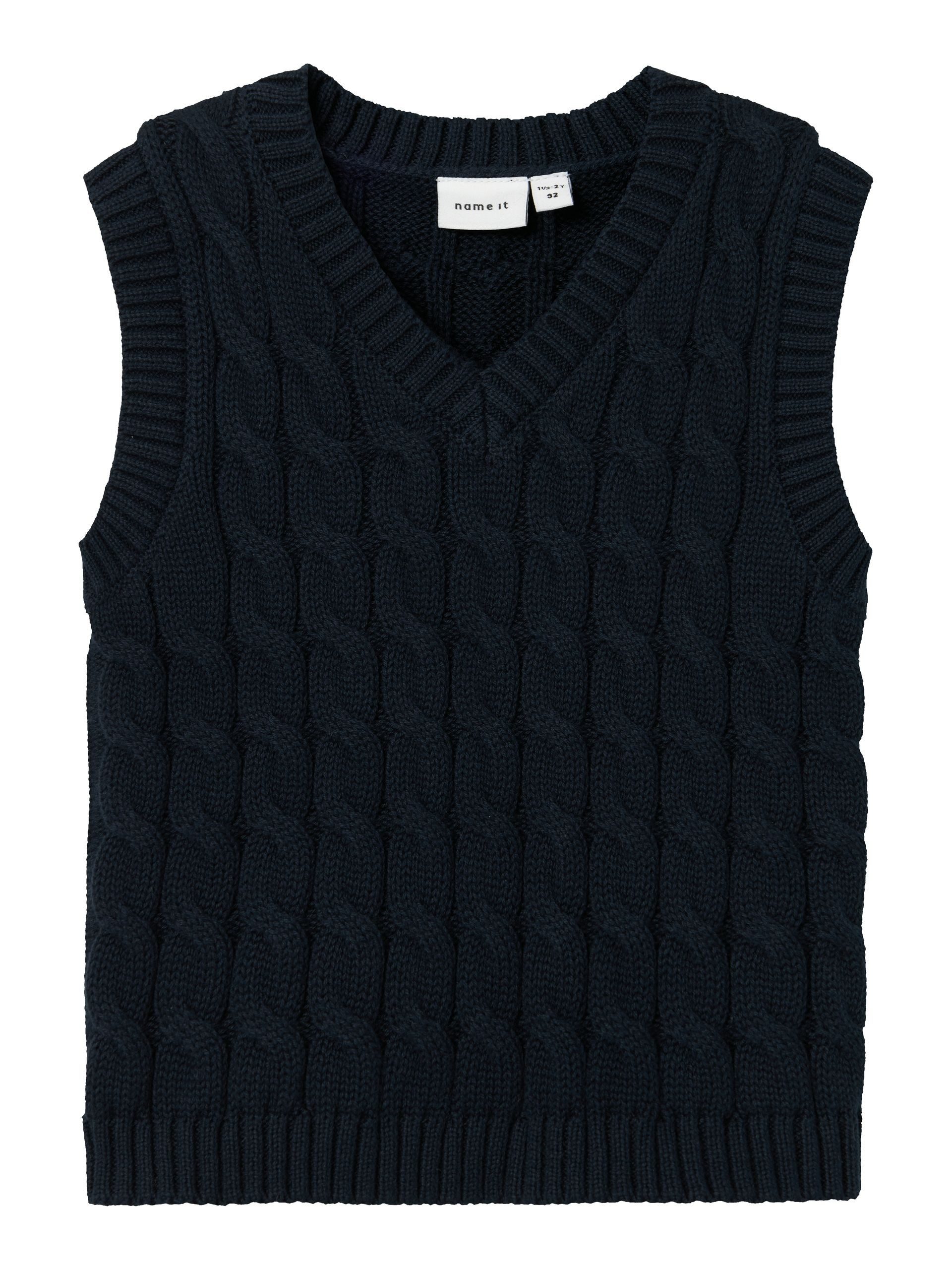 Die NMMREMON KNIT SLIPOVER Strickweste von Name it ist ideal für Jungen, die eine stilvolle und bequeme Kleidungsoption für den Kindergarten und Freizeitaktivitäten suchen. Gefertigt aus 100% Bio-Baumwolle, bietet die Weste ein angenehmes Tragegefühl und ist dank ihres normal geschnittenen Designs sehr bewegungsfreundlich. Das klassische Zopfstrickmuster verleiht ihr eine traditionelle Optik, während der V-Ausschnitt das Überziehen über andere Kleidungsstücke erleichtert. Diese vielseitige Weste eignet sich perfekt für den Lagenlook und kann sowohl zu formellen als auch zu lässigen Anlässen getragen werden.