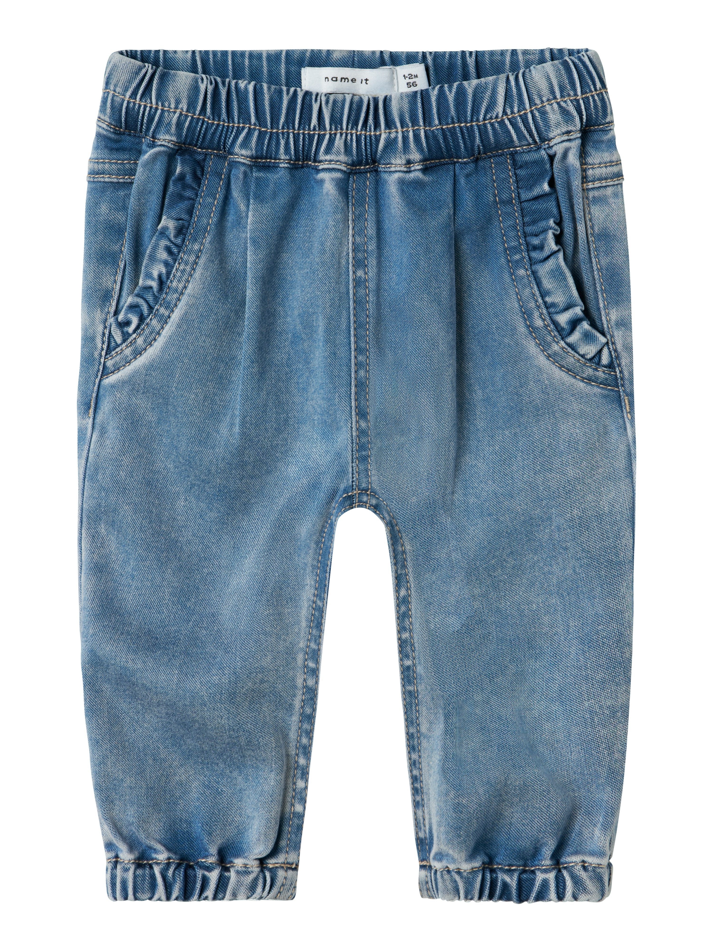 Die Regular-fit-Jeans »NBFROSE R FRILL JEANS 1550-TO NOOS« von Name It . Die weite Beinform der Mädchen-Jeans engt die Babys durch den lockeren Schnitt nicht ein und die normale Leibhöhe sitzt direkt auf der Hüfte. In der Coinpocket, den Eingrifftaschen und den Gesäßtaschen finden kleine Fundstücke Platz.