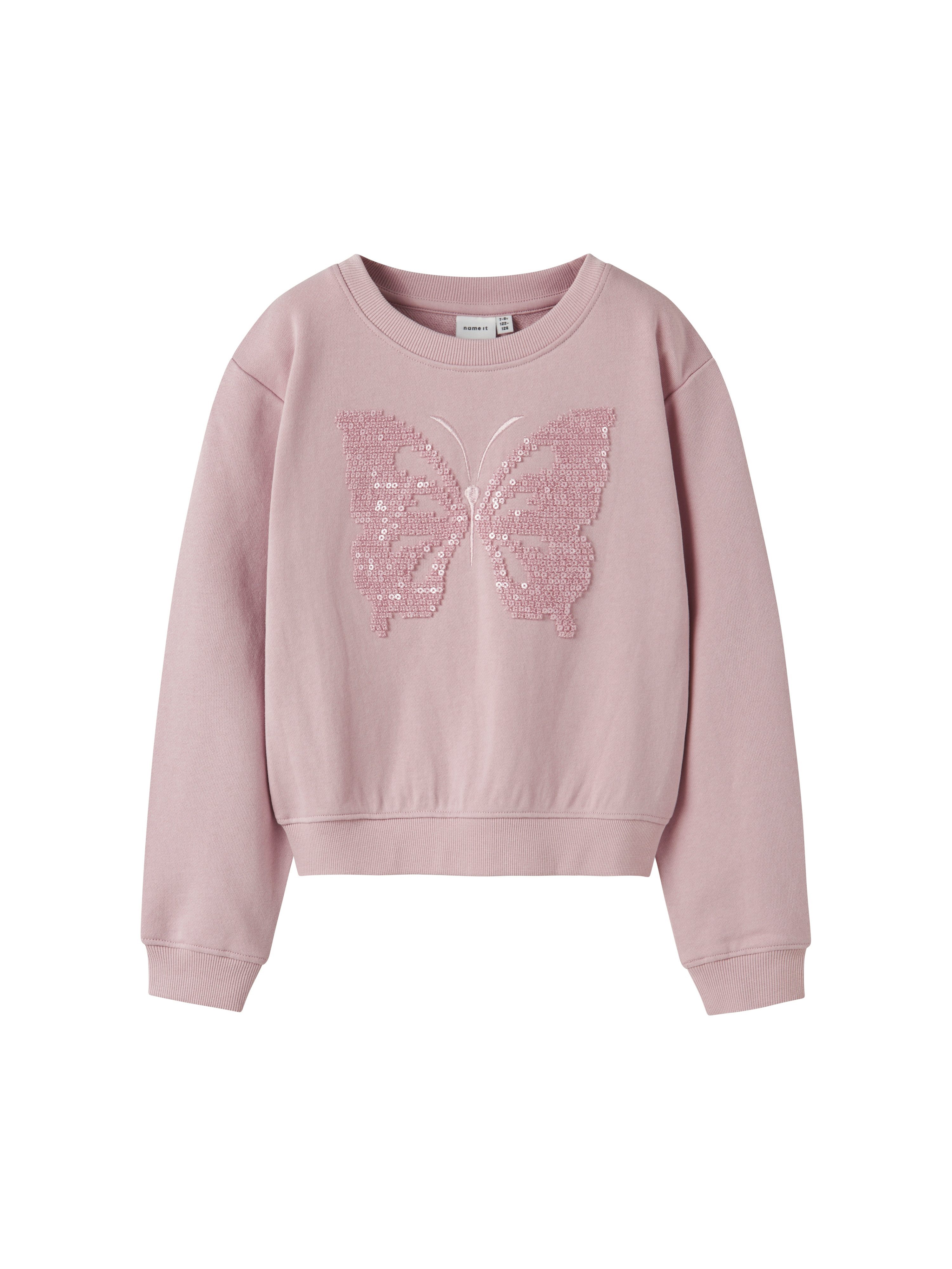 Das Sweatshirt »NKFLOVA SH NREG SWEAT UNB BOX« von Name It ist ein stylisches Essential, um den persönlichen Stil zu finden. Es wirkt mit dem Print trendig und ausgefallen. Die langen Ärmel enden in einem Rippbündchen. Das Sweatshirt hat einen Rundhalsausschnitt und ist normal lang sowie basic geschnitten, sodass der Tragekomfort nicht zu kurz kommt.