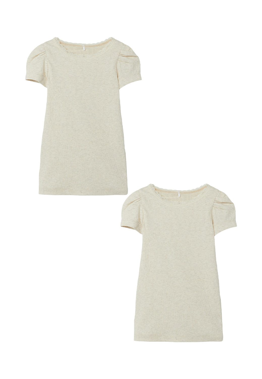Die Puffärmel verleihen einen verspielten Touch, während das Spitzen-Detail einen Hauch von Raffinesse verleiht.