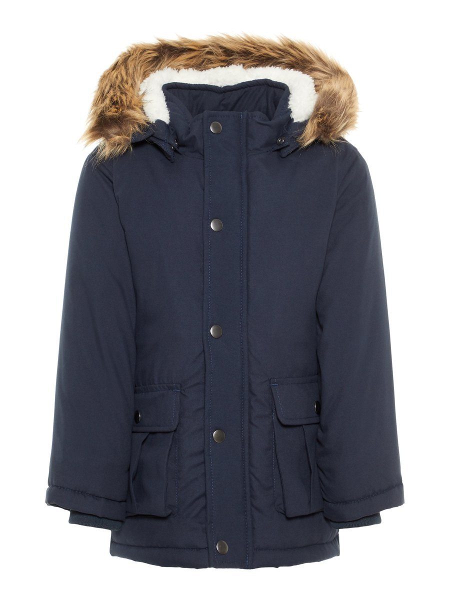 - warme wattierte Winterjacke - Öffnung vorn, Reißverschluss mit Kinnschutz - hinten Reflektor-Detail - Kapuze mit Kunstfell sind beide abnehmbar - an den Ärmelenden gerippte Bündchen - praktische Einschubtaschen - oben am Körper sowie Kapuze mit Teddyfutter