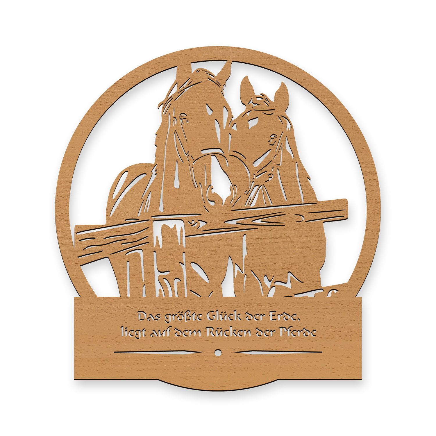 Dieses Pferde-Nachtlicht "Das größte Glück der Erde, liegt auf dem Rücken der Pferde" aus Holz ist Dekoration und Schlummerlicht in Einem: Tagsüber verziert die Pferde Lampe die Wand, nachts dient sie, dank LED-Hinterleuchtung, als sanfte Lichtquelle. Ob als Deko in eurer Reiterstube oder im Kinderzimmer — Dort leuchtet die Lampe deinem Kind den Weg zur Tür und hilft beim Einschlafen, wenn es sich noch vor der Dunkelheit fürchtet.