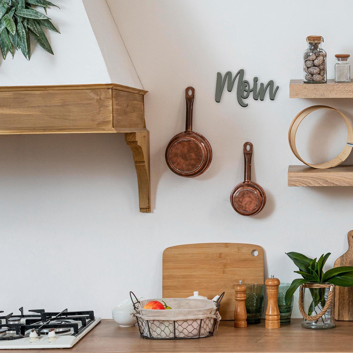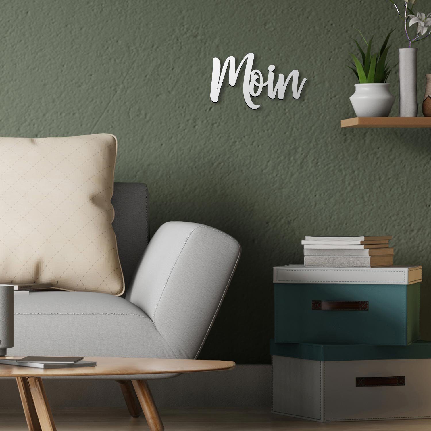 Unsere Wanddeko "Moin" passt in deine Küche, an jede Tür, in deinen Flur oder auch zu deiner Wand Deko Collage. Dieses "Moin" Schriftzug Wandtattoo aus Holz ist genau das Richtige Geschenk für Freunde aus dem Norden und ein absolutes Wanddeko 'must-have'! Ob als Geschenk zum Geburtstag, zum Einzug, zu Weihnachten, als Mitbringsel oder einfach für dich selbst. Hier erhältst Du nicht nur eine edle und natürliche Wand Tattoo Deko im Lettering Stil, sondern einen echten Blickfang im Eingangsbereich, im Wohnzimmer, im Schlafzimmer oder wo auch immer du dieses "Moin" Wandbild aus Holz anbringst.