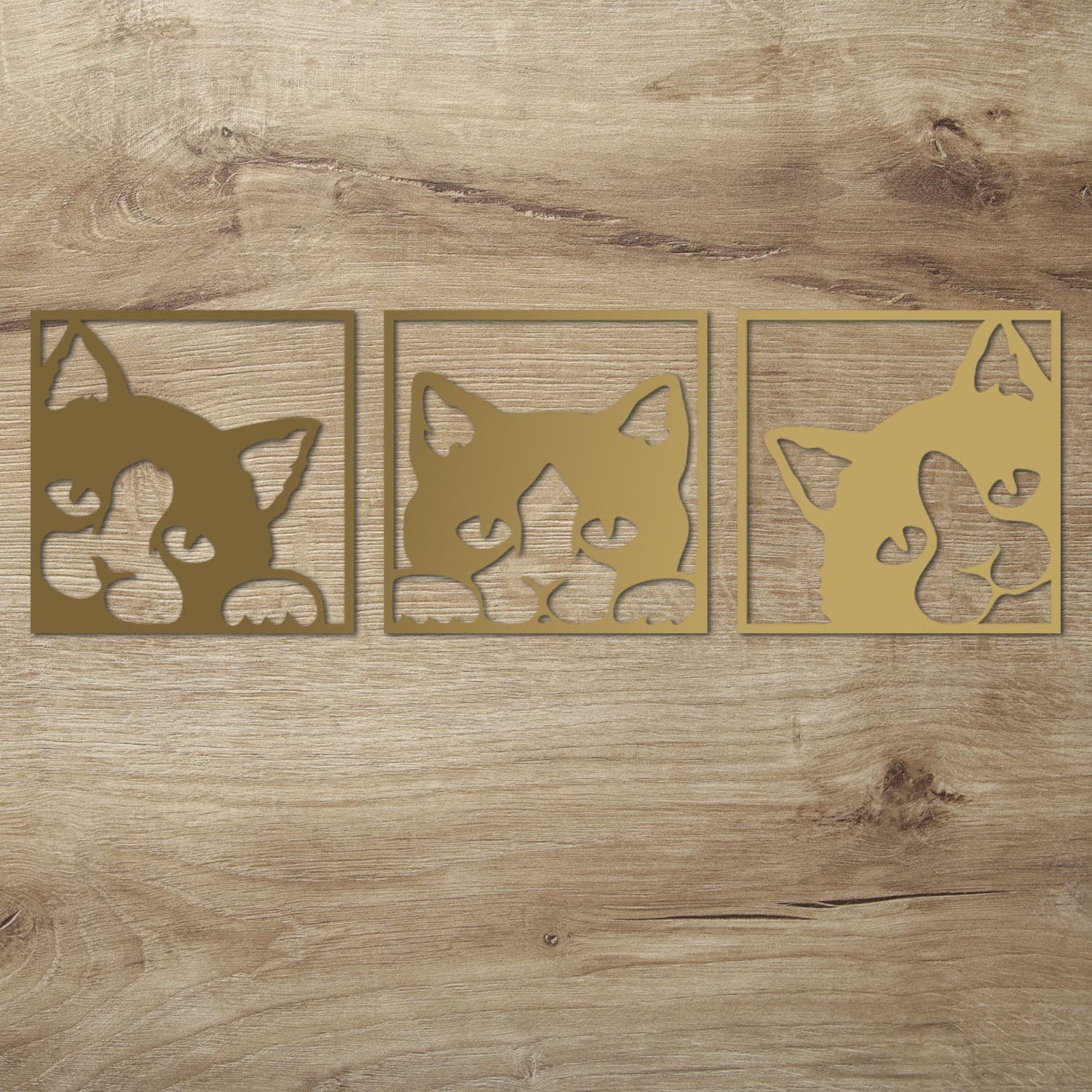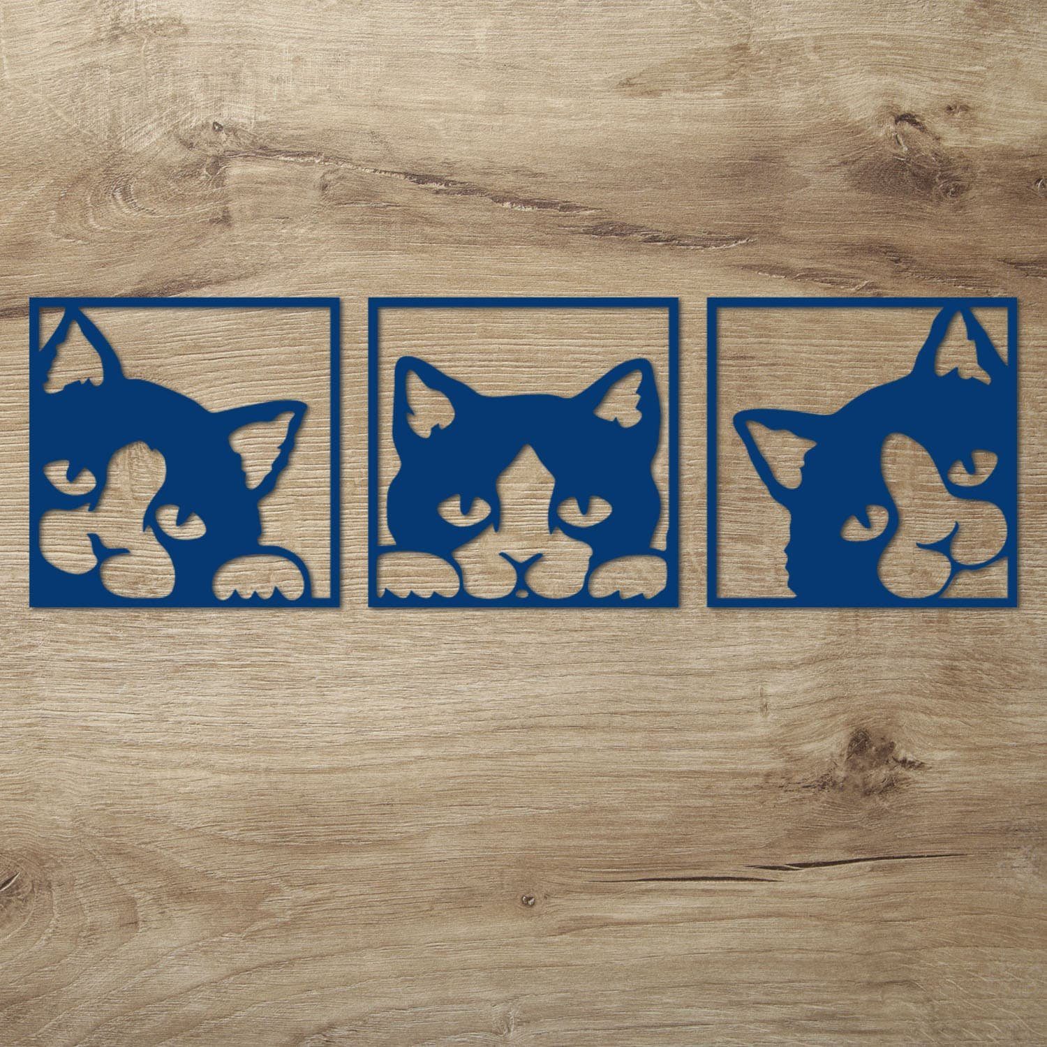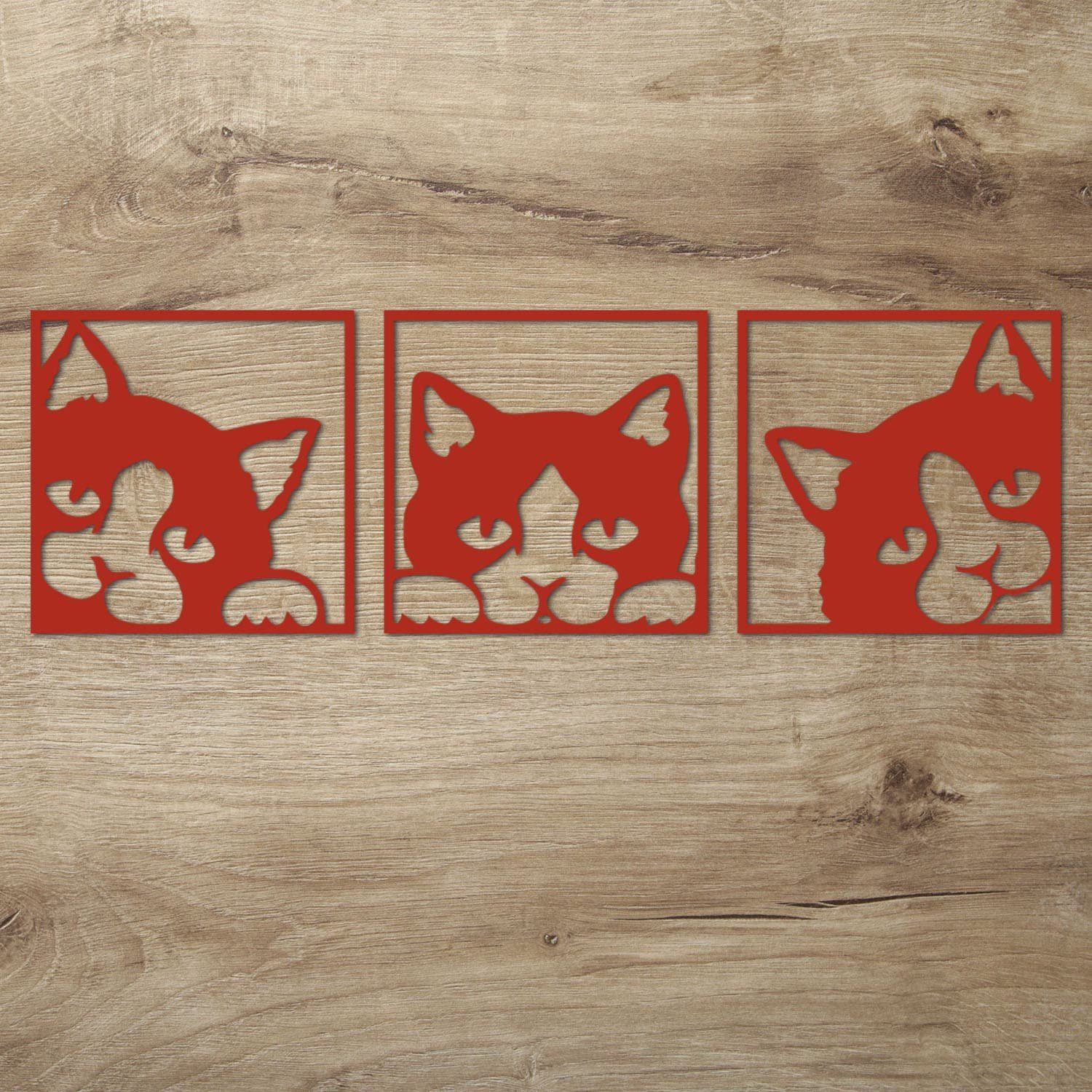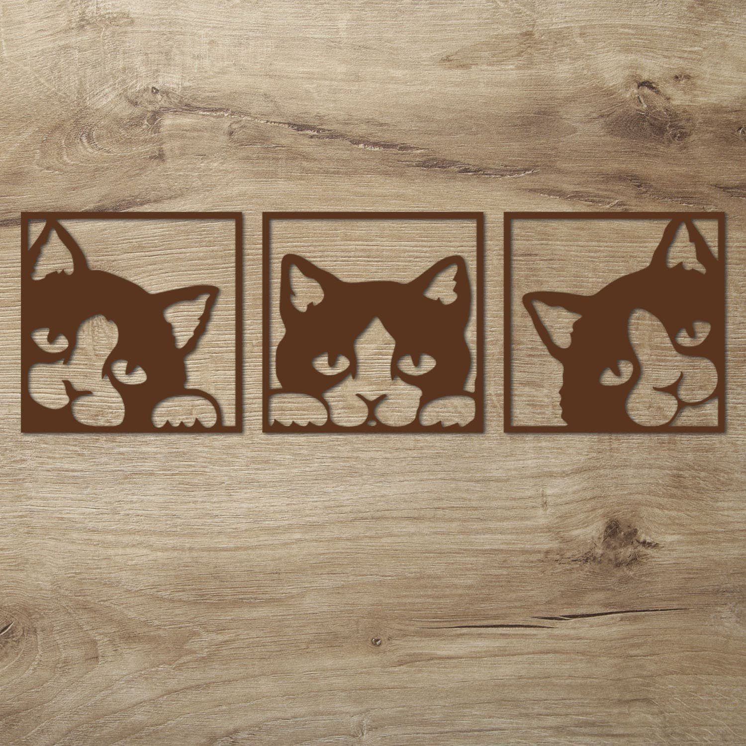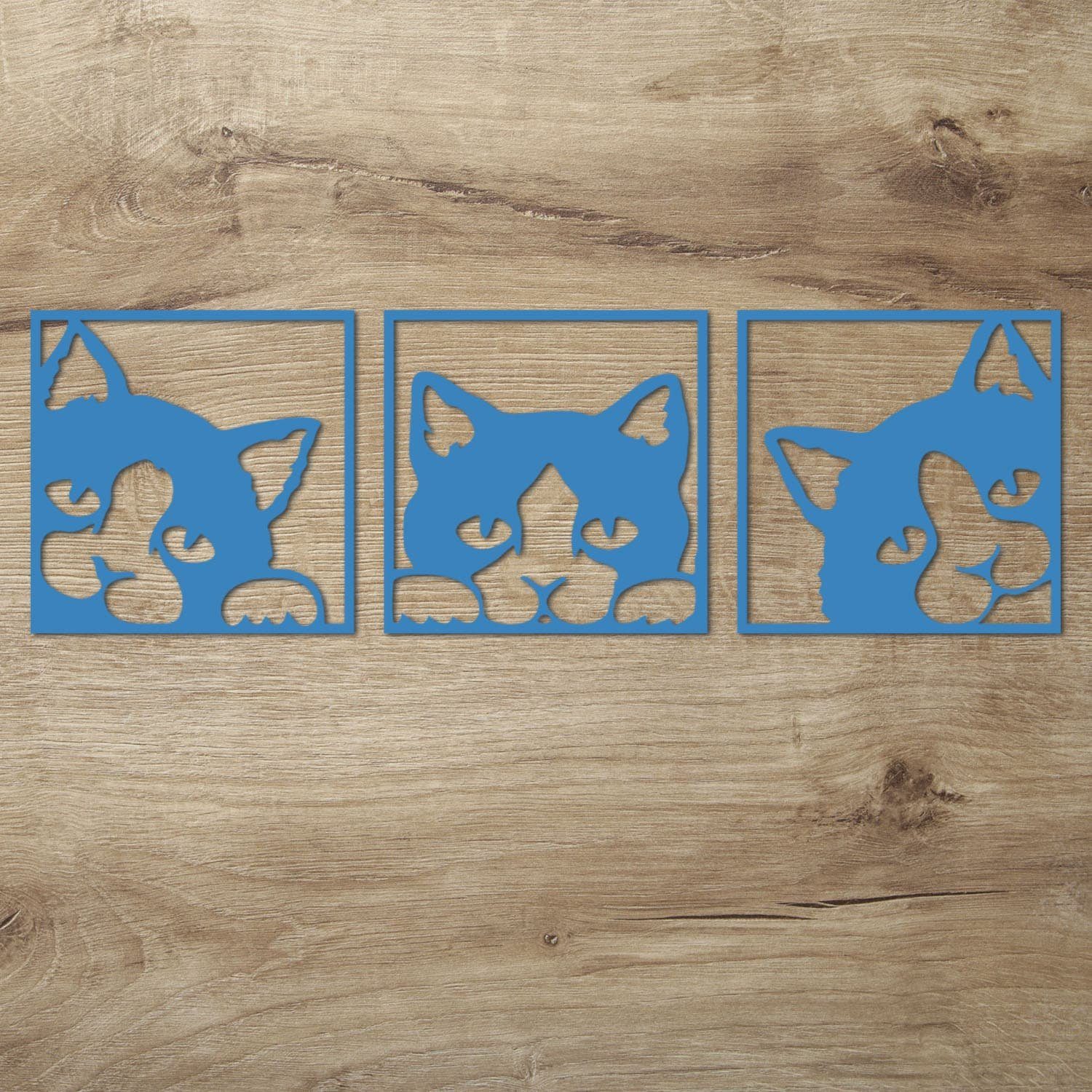 Diese Wanddeko Idee für Katzen Fans ist auch ein tolles Geschenk zum Geburtstag, Muttertag oder Weihnachten. Mit der dezenten Gestaltung passt es zu jedem erdenklichen Wohnstil. Die 3 Einzelbilder werden mit modernster Lasercut Technik sauber und präzise aus 6 mm starkem Pappelsperrholz herausgearbeitet.