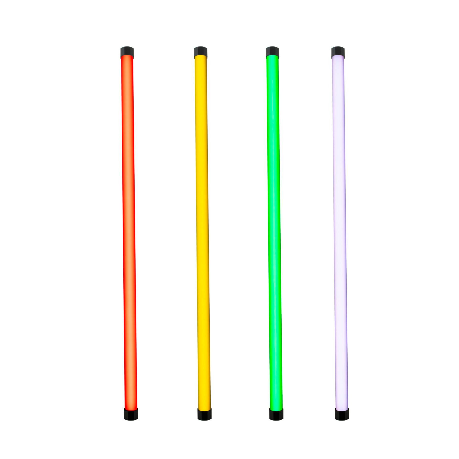 Mit vier multifunktionalen LED-Farb-Effektleuchten in Röhrenform. Diese bieten die Beleuchtungsarten weißes Licht und farbiges Licht sowie besondere Spezialeffekte, inkl. Segment-Effekte. Direkte Steuerung oder Fernsteuerung über Bluetooth, Funk oder DMX/RDM. Wahlweise Netzbetrieb oder Akkubetrieb mit integriertem Lithium-Ionen Akku für den mobilen, netzunabhängigen Einsatz. Zahlreiche Befestigungs- und Handhabungsmöglichkeiten. Inklusive Netz-/Ladegeräten, Befestigungszubehör und gepolsterte Transporttasche.