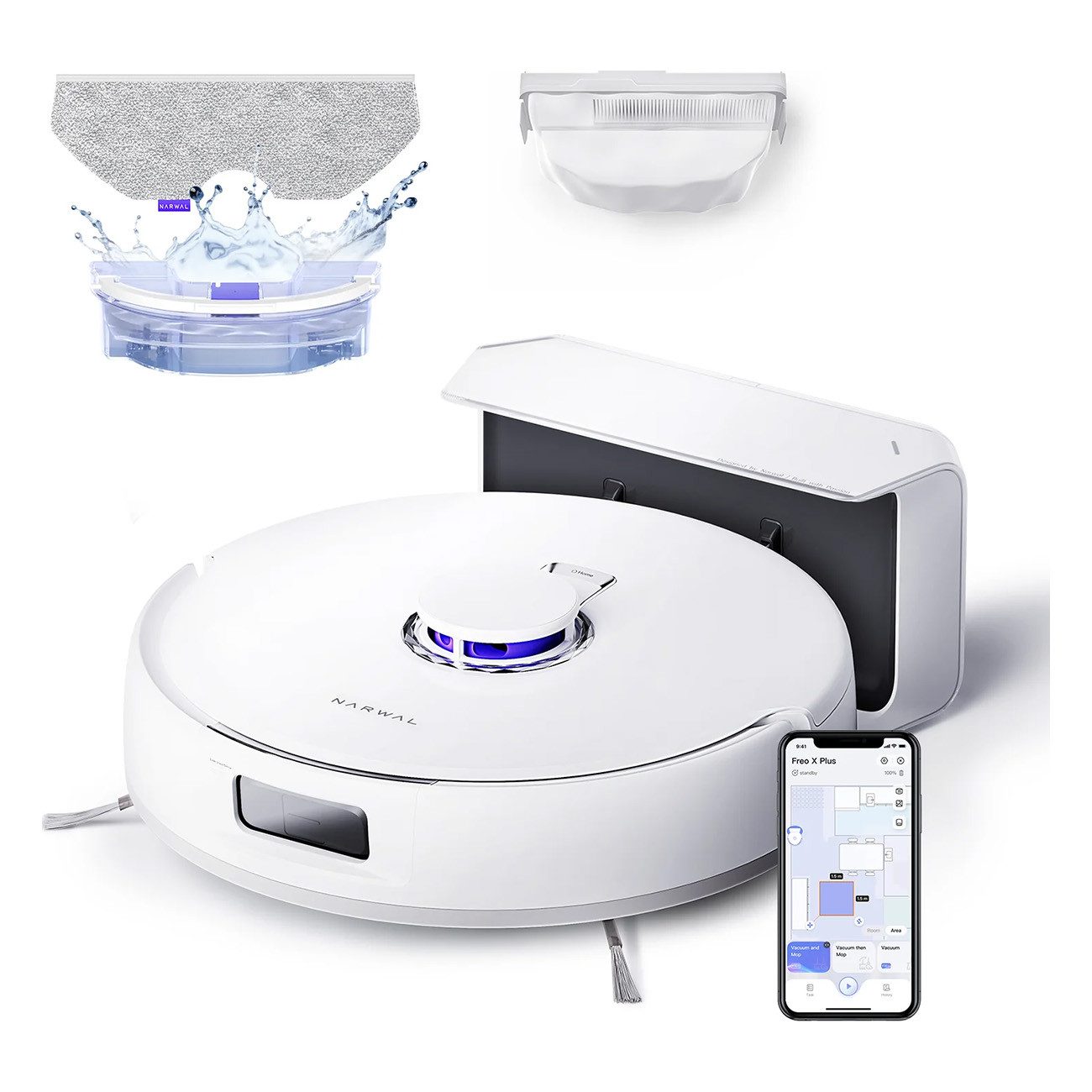 Entdecken Sie den brandneuen Narwal Freo X plus - die nächste Generation von selbstentleerenden Saugrobotern, die mit intelligenter Hindernisvermeidung und branchenführender Hyper-Saugleistung eine herausragende Reinigungsleistung bieten. Der Narwal Freo X plus navigiert dank seiner Tri-Laser-Hindernisvermeidung mühelos um Möbel herum und reinigt gründlich jeden Winkel Ihres Zuhauses. Dank seiner innovativen Technologie können Sie sich ganze 7 Wochen lang über eine staubfreie Umgebung freuen, ohne sich Gedanken über das Leeren des Staubbehälters machen zu müssen. Der Narwal Freo X plus saugt und wischt gleichzeitig, um sowohl Hartböden als auch Teppiche effektiv zu reinigen. Mit einer Reinigungszeit von bis zu 254 Minuten pro Ladung und kurzer Ladezeit ist dieser Saugroboter bereit, Ihr Zuhause makellos sauber zu halten. Erleben Sie die Zukunft der Reinigung mit dem Narwal Freo X plus und genießen Sie ein sauberes Zuhause, ohne einen Finger rühren zu müssen. Holen Sie sich jetzt Ihren eigenen Saugroboter und erleichtern Sie sich das Leben!
