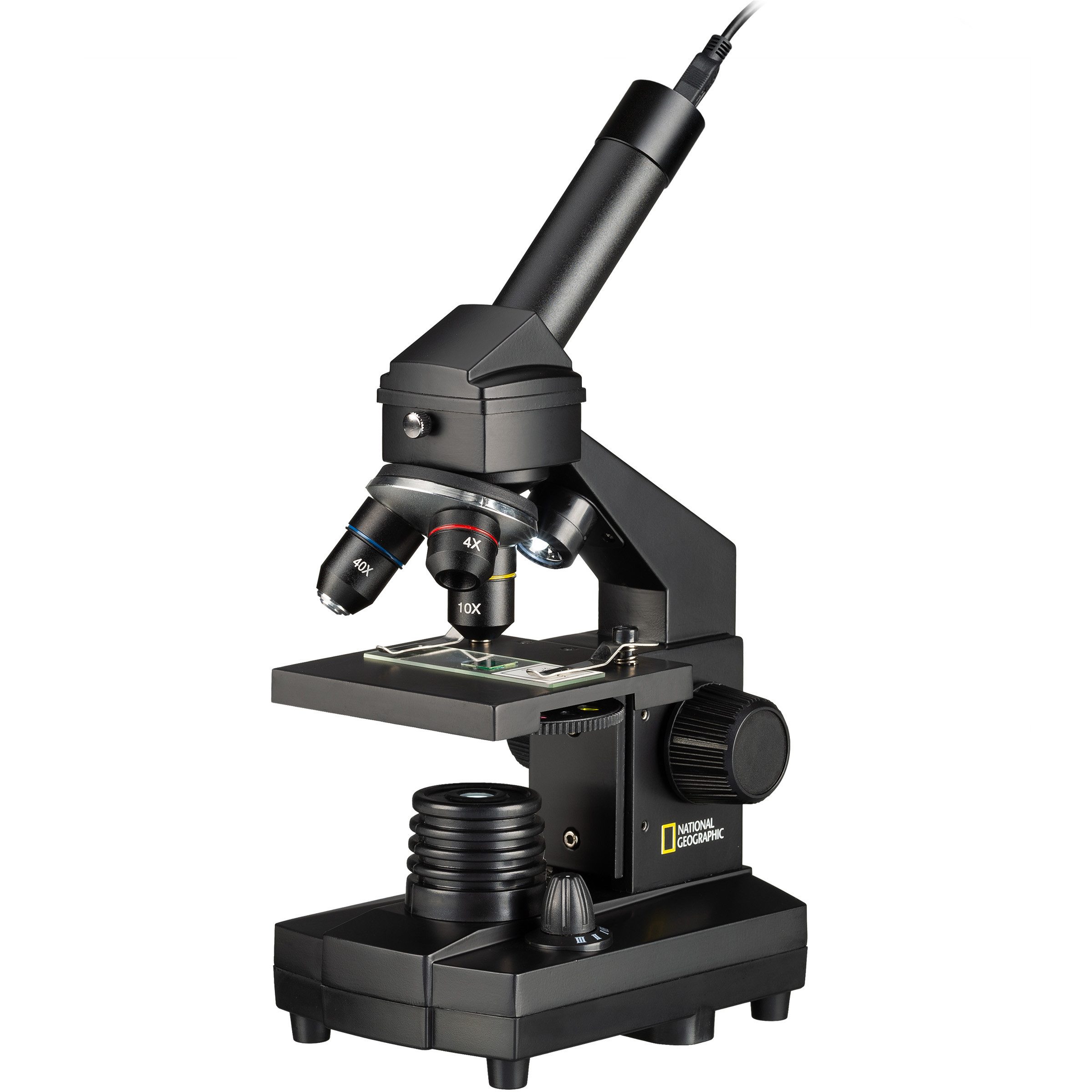 Lieferumfang | Mikroskop, Objektive: 4x; 10x ;40x, Okulare: 10x; 16x, Barlowlinse 1,6x, Farbfilterrad mit Lochblenden, Präparierbesteck (Pinzette, Pipette), 5 Objektträger, 20 Deckgläser, 5 Präparate, Hefe; Seesalz; Garneleneier; Gum Media; Garnelenbrutanlage; Microcut, |