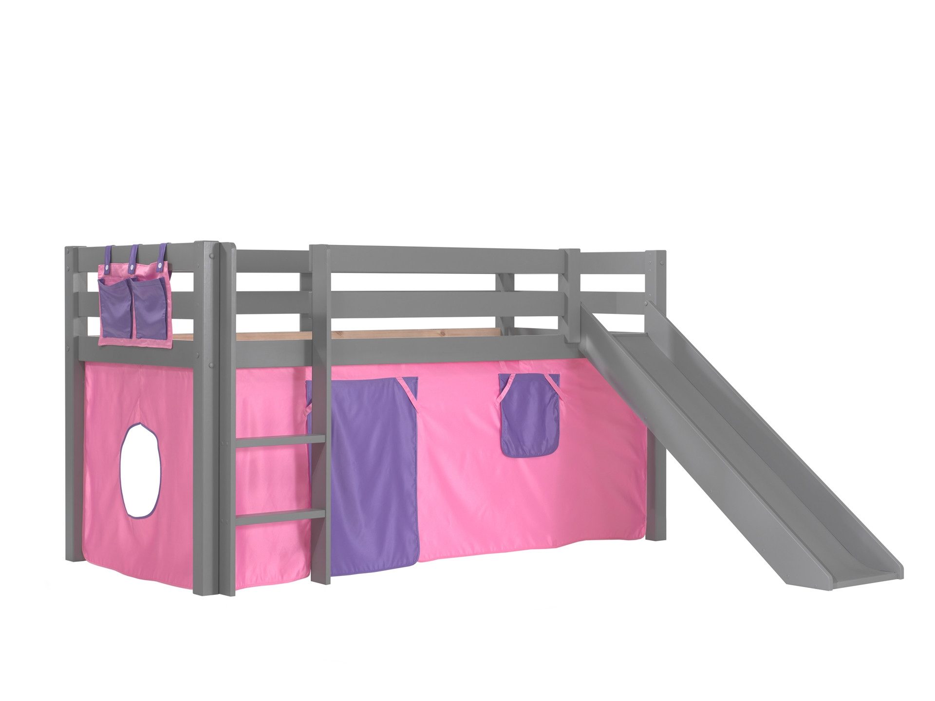 Lieferumfang | Spielbett Pino, inkl. Rolllattenrost, Liegefläche 90 x 200 cm mit Rutsche und Textilset "Bella" |