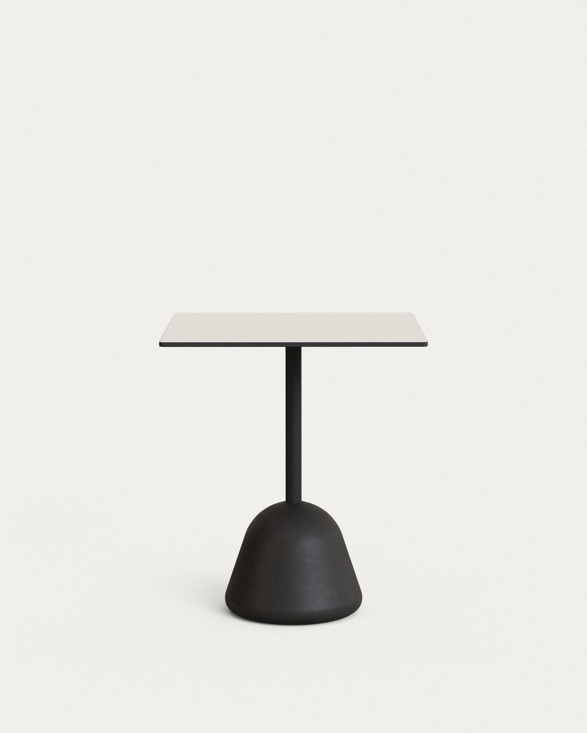 Entdecken Sie diesen stilvollen Tisch mit einer eleganten quadratischen Phenolplatte in strahlendem Weiß, der Ihrem Außenbereich einen modernen Akzent verleiht. Der robuste Standfuß aus Zement mit edlem schwarzem Finish sorgt nicht nur für Stabilität, sondern auch für einen ansprechenden Kontrast zur hellen Tischplatte. Mit kompakten Maßen von ca. 68 x 68 x 73 cm ist dieser Tisch ideal für Balkone, Terrassen oder kleinere Gärten, wo er sowohl Funktionalität als auch eine ansprechende Ästhetik bietet. Genießen Sie gesellige Stunden im Freien mit diesem zeitlosen Möbelstück, das sowohl für entspannte Kaffeepausen als auch für festliche Dinnerabende geeignet ist.