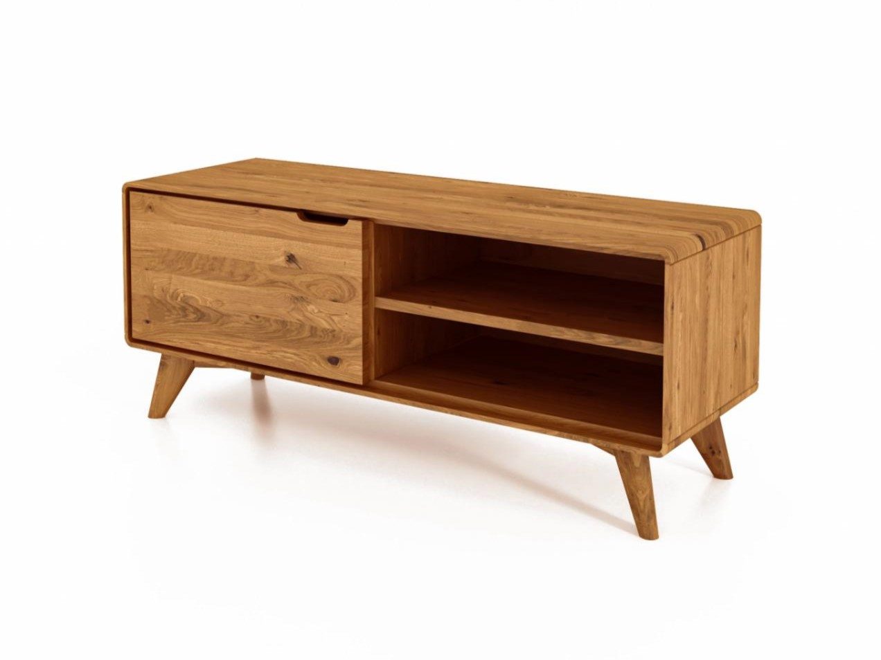 Dieses TV-Board ist ein Highlight hinsichtlich Design und Verarbeitung. Es ist aus massiver geölter Wildeiche gefertigt. Das Lowboard hat eine Tür mit Fingerschachthalterung. Daneben befinden sich noch zwei offene Fächer. Das TV-Board bietet genug Platz für einen Fernseher oben und diverse andere Utensilien hinter der Tür oder in den offenen Fächern. Ein sehr stylisches Möbelstück für Ihr Wohnzimmer. Passt ideal zu den weiteren Möbeln aus der Gerg-Serie.