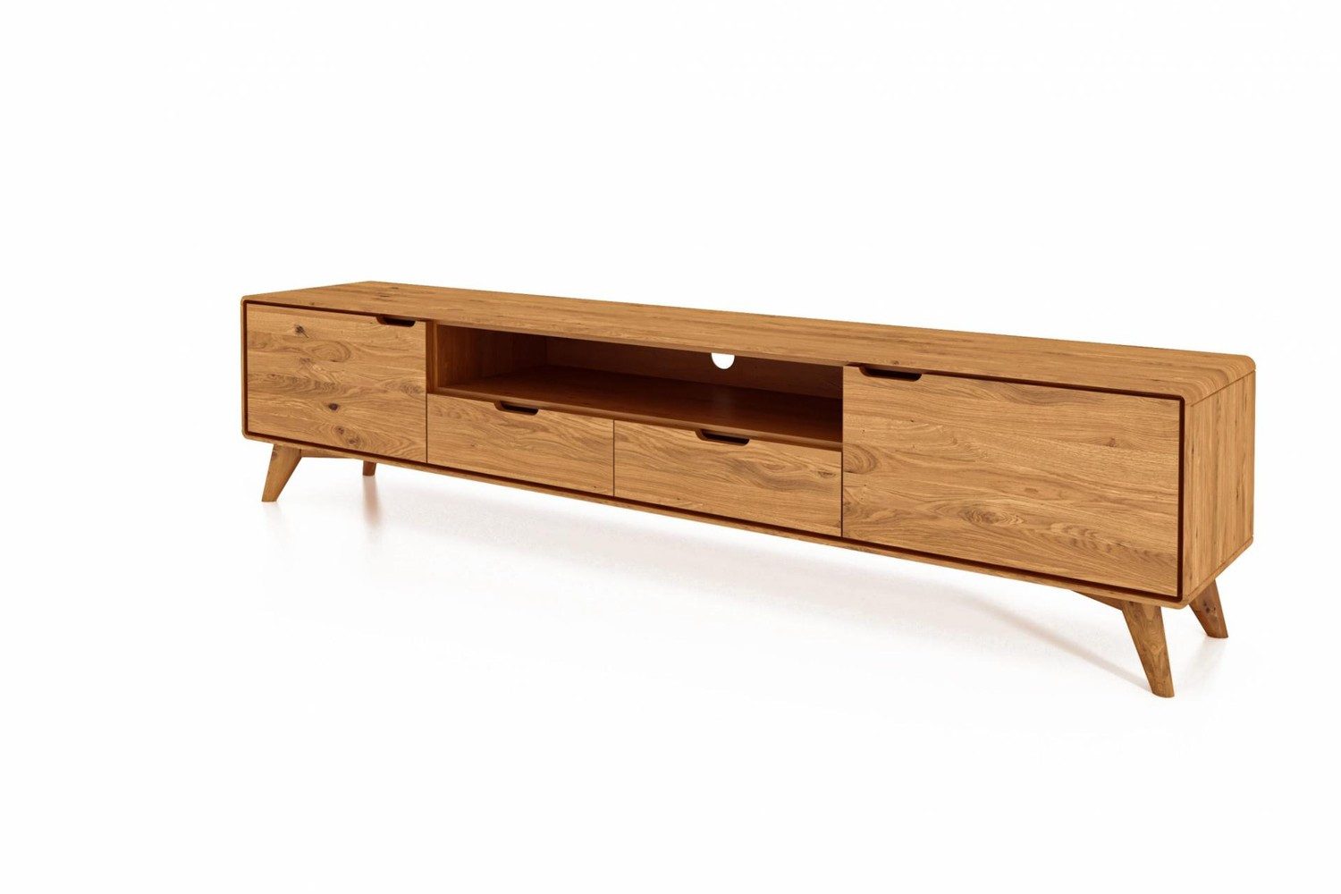 Dieses TV-Board ist ein Highlight hinsichtlich Design und Verarbeitung. Es ist aus massiver geölter Wildeiche gefertigt. Das Lowboard hat zwei Türen mit Fingerschachthalterung. In der Mitte 1 großes offenes Fach und 1 große Schublade mit Fingerschachthalterungen und Soft Close. Das TV-Board bietet genug Platz für einen Fernseher oben und diverse andere Utensilien hinter den Türen, in der Schublade oder in dem offenen Fach. Ein sehr stylisches Möbelstück für Ihr Wohnzimmer. Passt ideal zu den weiteren Möbeln aus der Gerg-Serie.