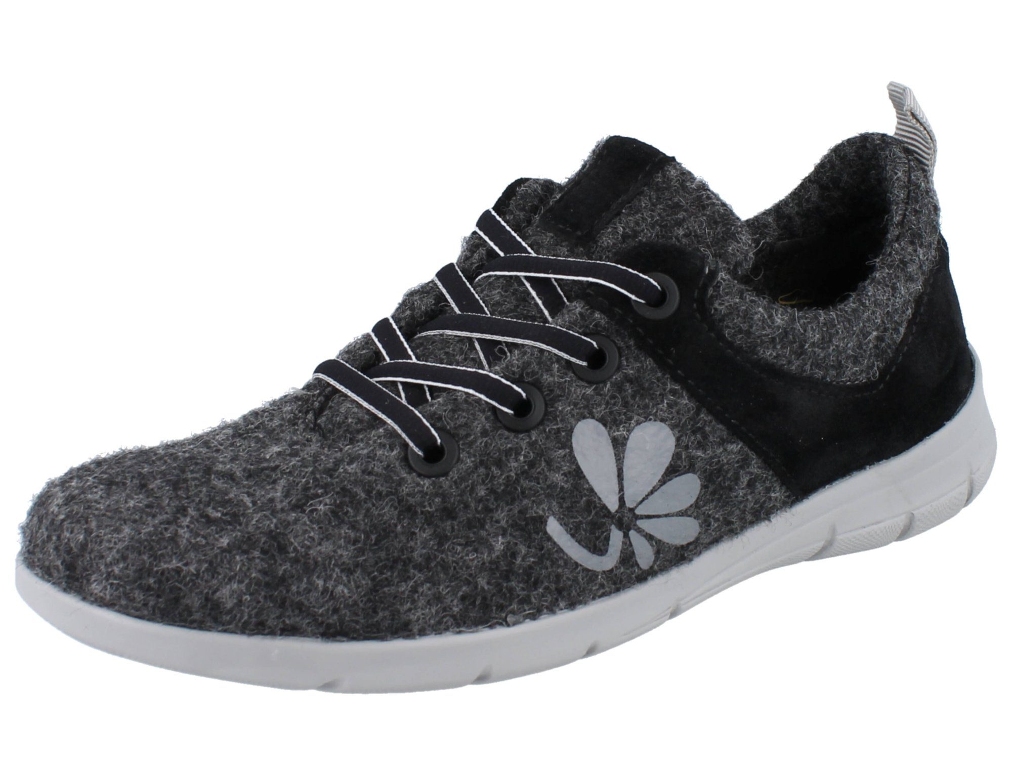 Dieser trendige Damen Sneaker des Hauses natural sense präsentiert sich hier in grauem Wollfilz mit hellgrau abgesetzter Sohle. Zusätzlich wurde eine schwarze Applikation aufgenäht. Die natural sense Schnürschuhe punkten durch Komfort, Qualität und Эко-товары und ist eine alternative im modischen Freizeitbereich. Die Schuhe verfügen über ein Wechselfußbett, dass durch eigene Einlagen ersetzt werden kann. Sie werden unter fairen Arbeitsbedingungen in Europa hergestellt, erfüllen die Strengen REACH-Regularien und bestehen daher weitgehend aus schadstoffgeprüften Naturmaterialen. Dieser Halbschuh hat die normale Weite.