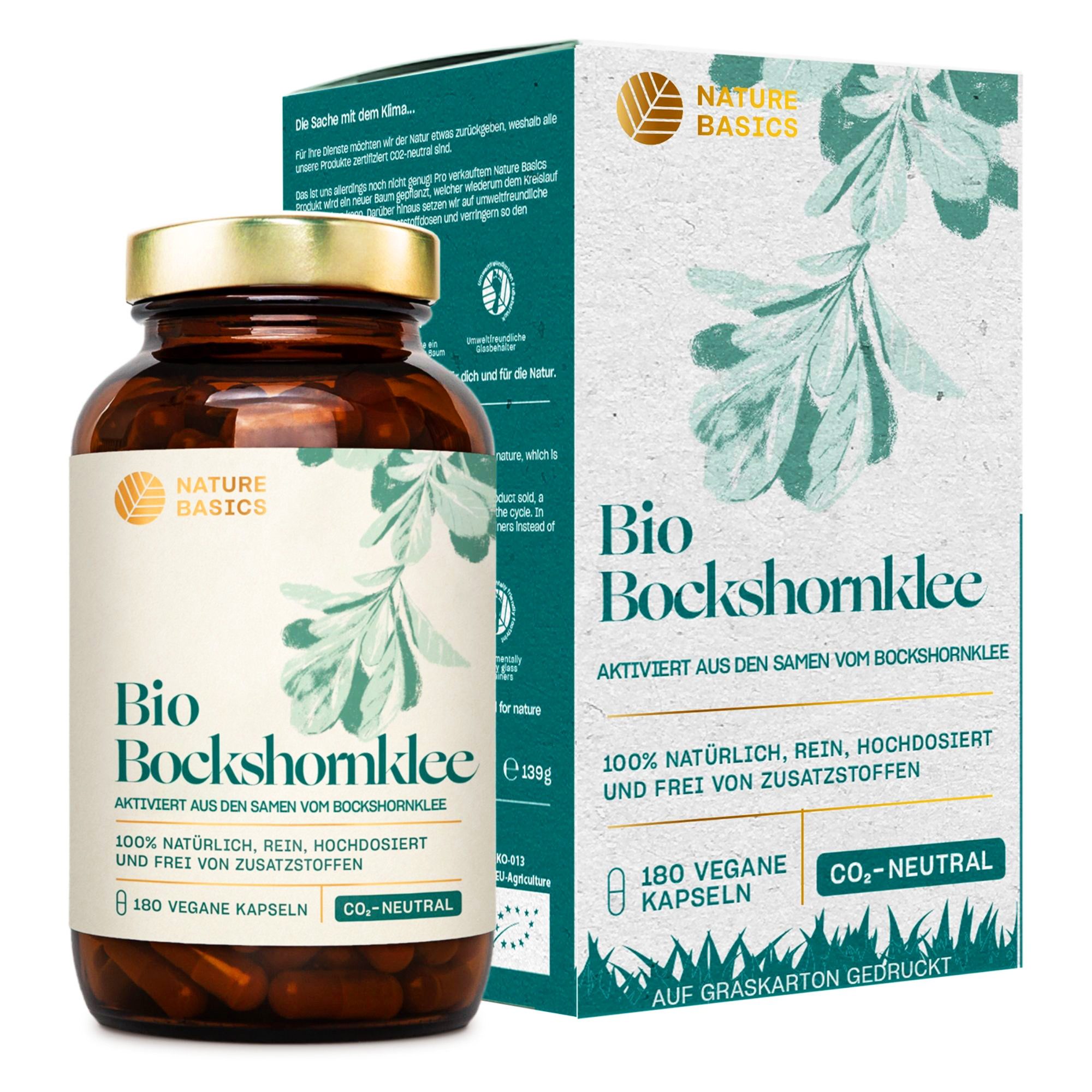 180 Kapseln mit hochdosiertem 2.600 mg Bio Bockshornklee Samenpulver pro Tagesdosis (2 x 2 Kapseln). Wir von Nature Basics empfehlen 2 x 2 natürliche Bio Bockshornklee Kapseln pro Tag.