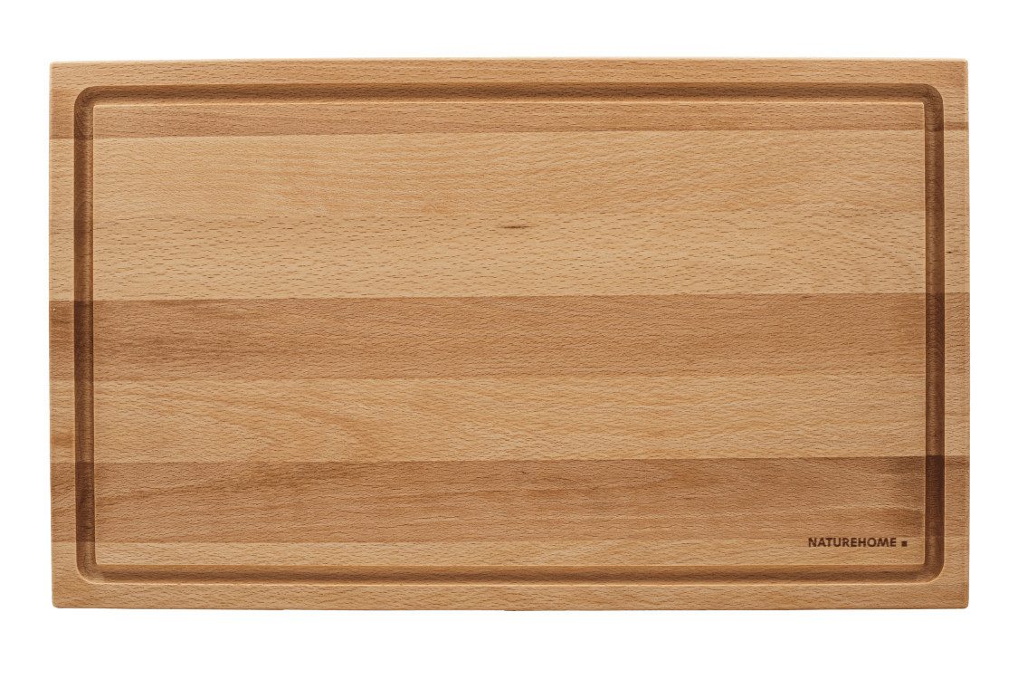 Dieses extra große Schneidebrett aus massivem Buchenholz von NATUREHOME überzeugt mit einer großzügigen Arbeitsfläche von 50 x 30 cm – ideal zum Zubereiten und Anrichten größerer Mengen. Die integrierte Saftrille hält die Arbeitsfläche sauber, indem sie Flüssigkeiten und kleingehackte Kräuter sicher auffängt. Das robuste und langlebige Buchenholz schützt vor Schnitten und bleibt über viele Jahre formstabil. Mit seiner eleganten Holzmaserung bringt das Brett Wärme und Stil in Ihre Küche. Эко-товар und schadstoffarm gefertigt, ist es nicht nur funktional, sondern auch ein echter Hingucker – perfekt für anspruchsvolle Köche und Genießer