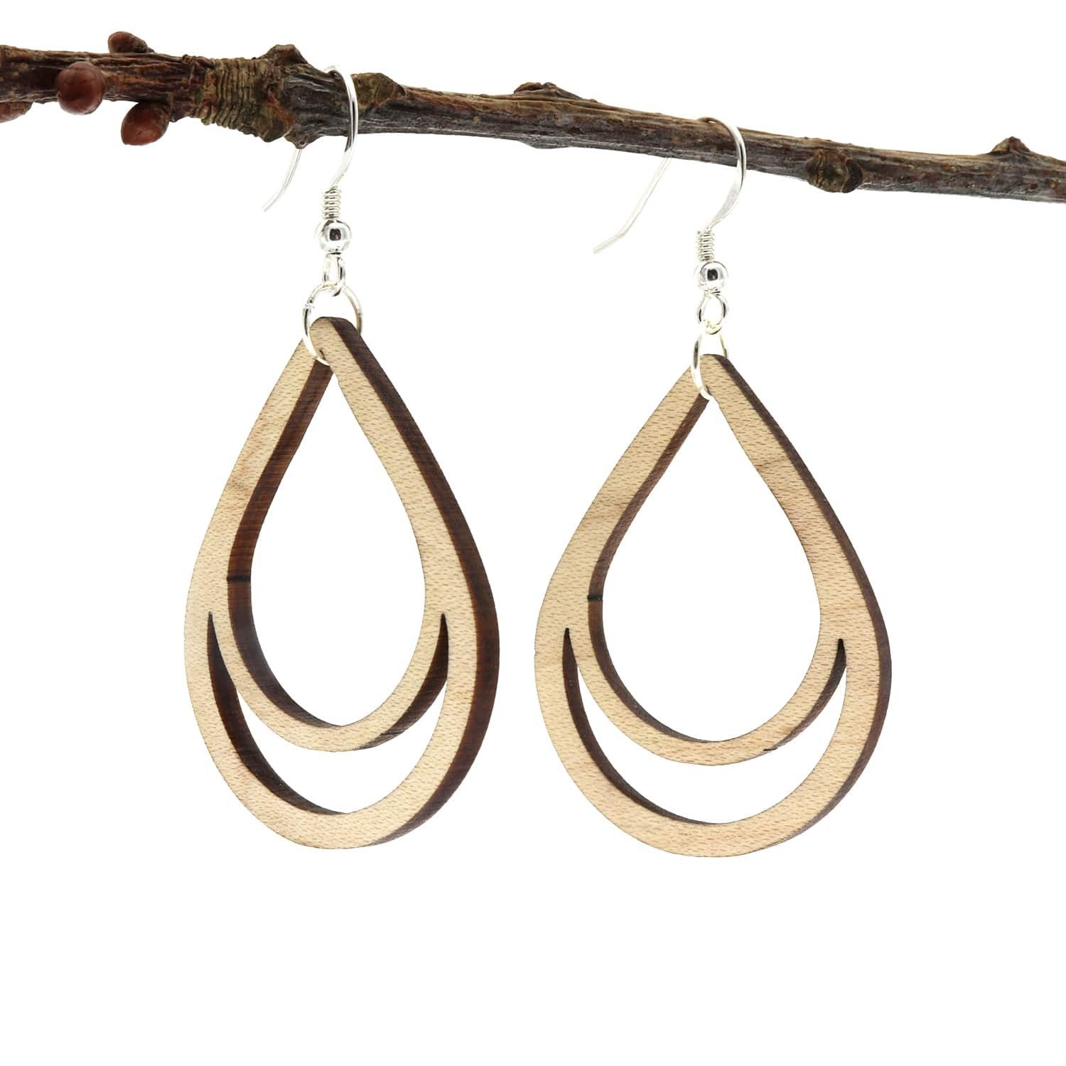 Lieferumfang: 1 Paar Tropfen Holzohrringe Ohrhänger aus Nussbaumholz, Ahornholz oder Zebranoholz
