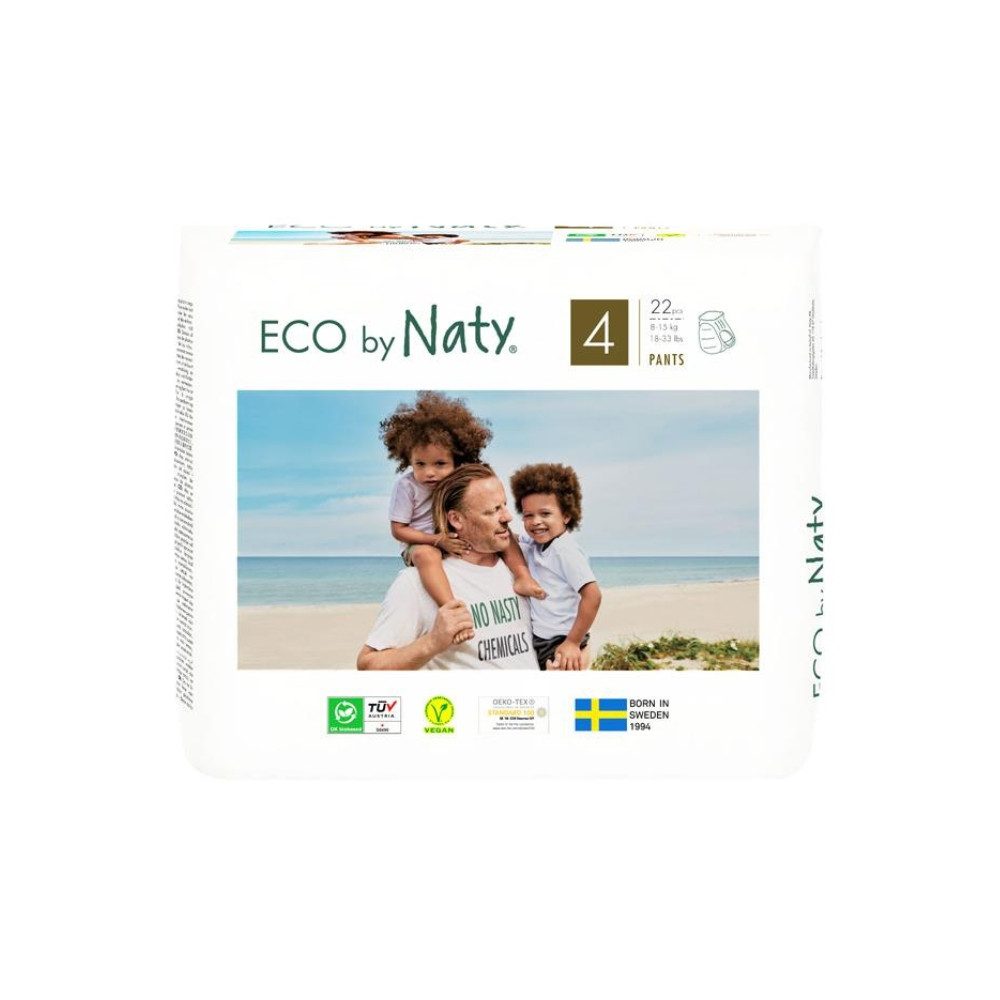 Unsere Eco by Naty Pants sind besonders leicht anzuziehen und die zerreißbaren Seitenteile erleichtern das Wechseln. Diese Pants bestehen ebenfalls größtenteils aus pflanzlichen Materialien und bieten den gleichen hohen Standard an Trockenheit, Komfort und Design wie unsere herkömmlichen Windeln.