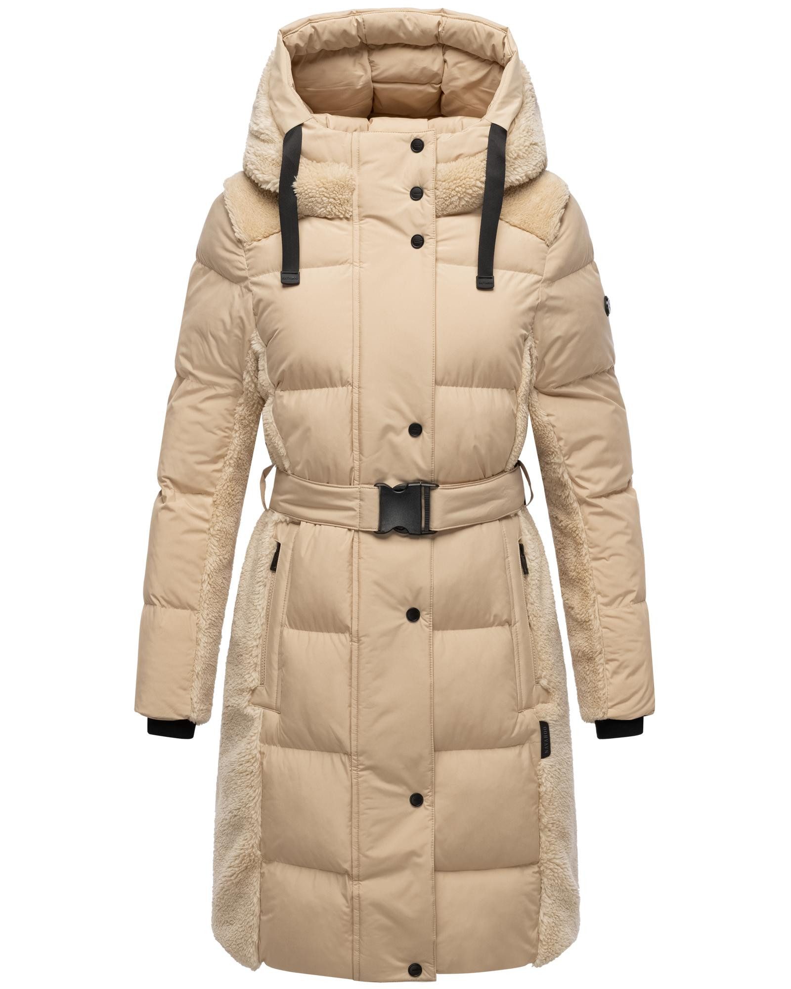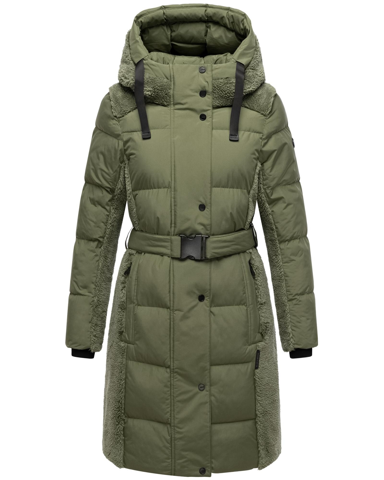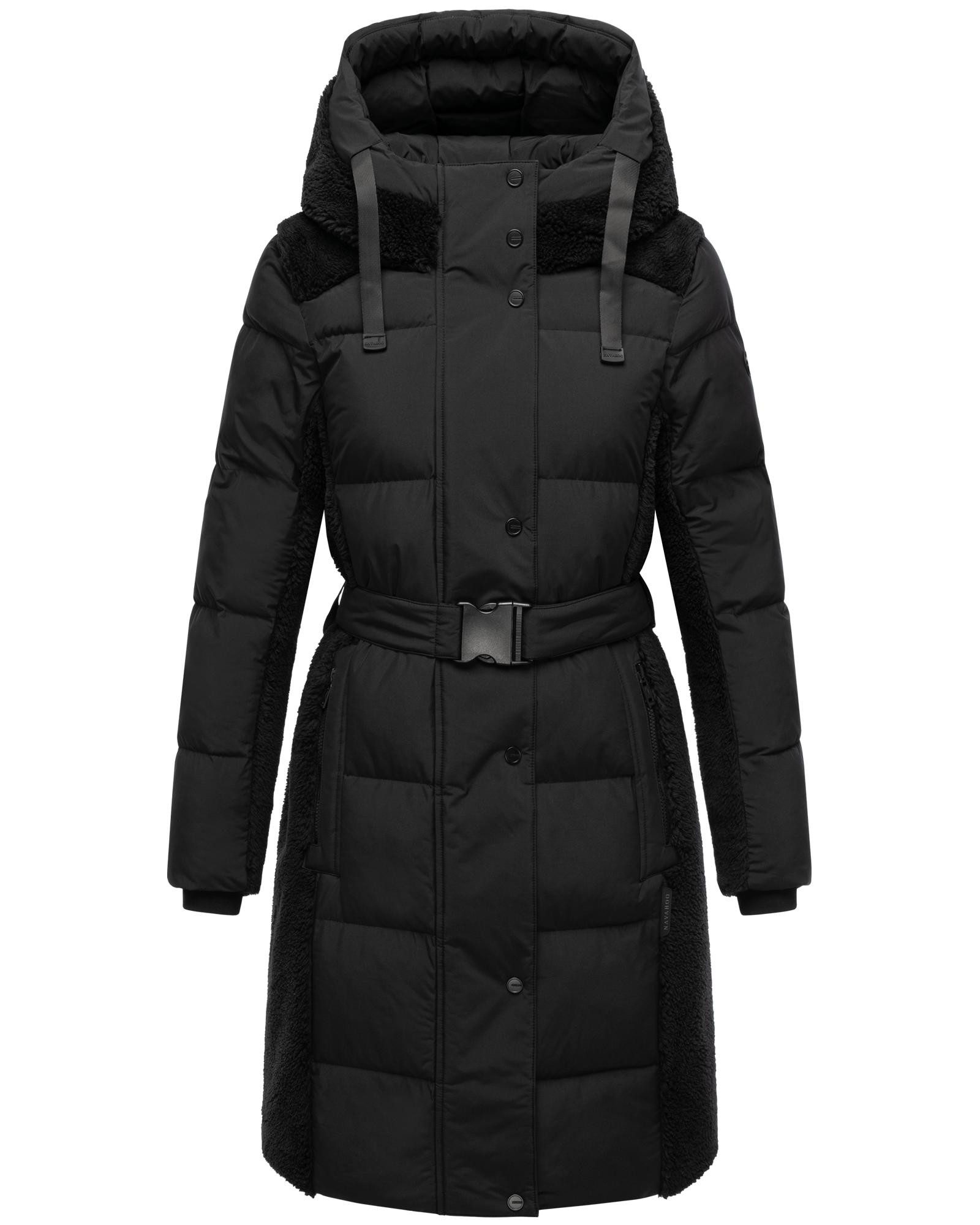Besondere Merkmale | warmer Mantel mit Teddyplüsch-Akzenten und Taillengürtel |