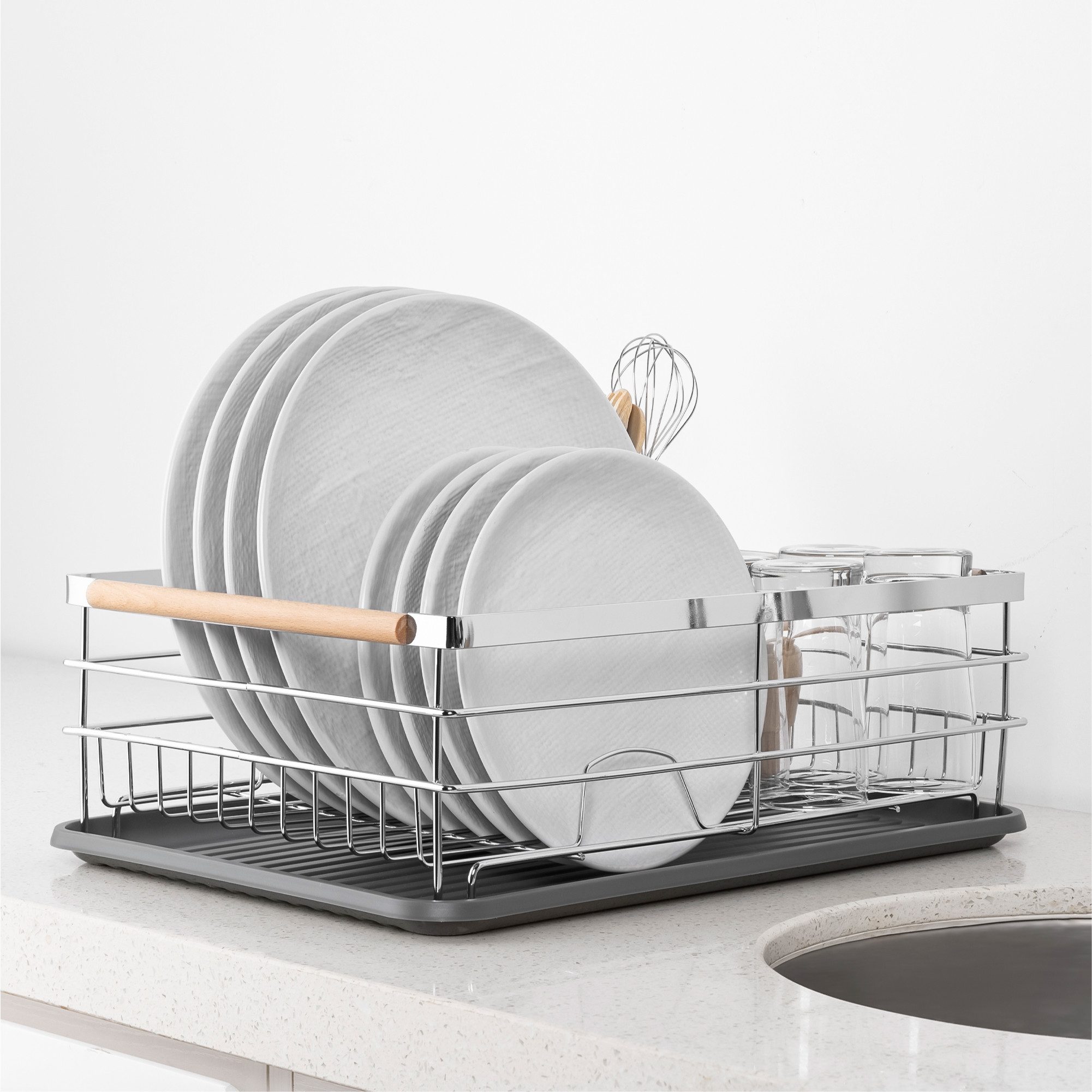 OHNE MONTAGE: Die stylische Geschirrablage kann direkt verwendet werden. Stell den Geschirrständer einfach auf deine Küchentheke oder Spüle.
