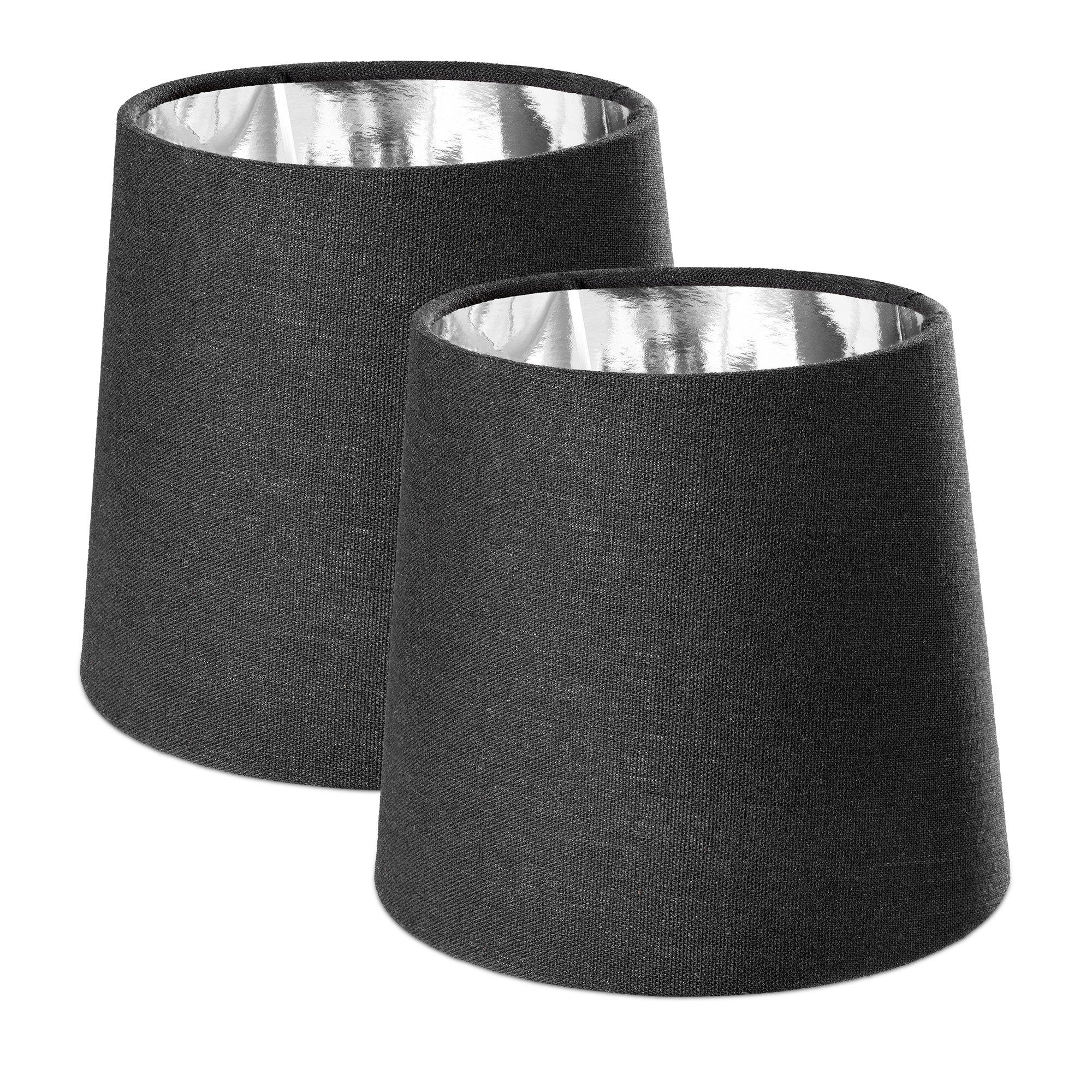 STYLISCH: Füge Deiner Tischleuchte mit E14 Fassung eine tolle neue Komponente hinzu: Der Stoff aus schwarzem Leinen und die silber-folierte Innenseite peppen Deine Lampe auf.