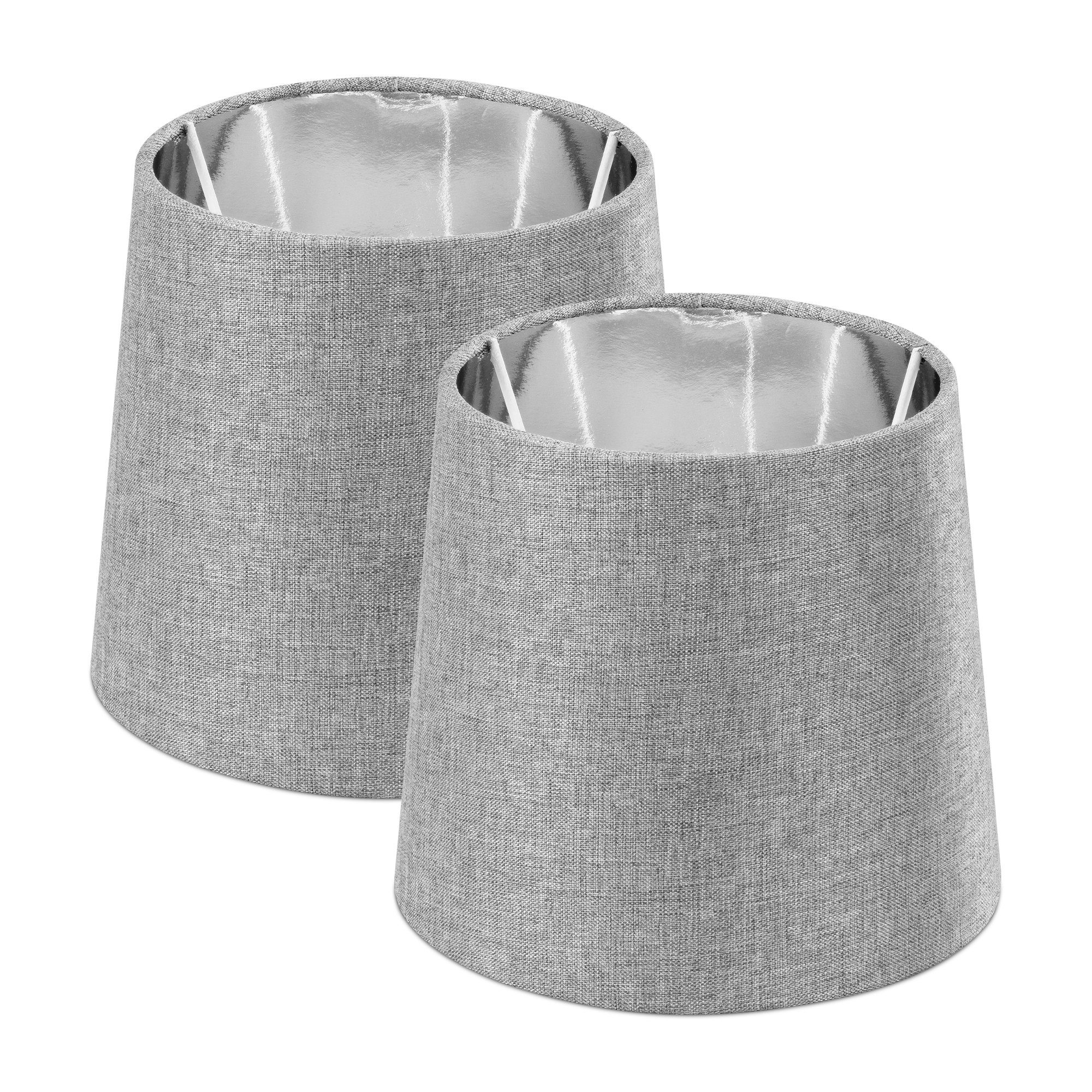 DETAILS: 2x Lampenschirm / Fassung: E14 / Durchmesser Ring: 2,9 cm / Höhe: 15,2 cm / Durchmesser: 17,2 cm unten; 13,7 cm oben / Material: Leinen, Kunststoff / Gewicht: 140 g