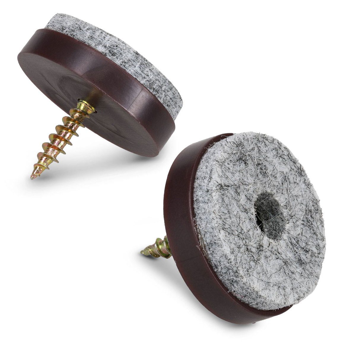 MONTAGE Löcher am Stuhl oder Tischbein vorbohren, den Kratzschutz Filz an den Möbelfuß, an Tisch- oder Stuhlbein drücken, Schraubenzieher oder Akkuschrauber an der Rückseite des Filzgleiters ansetzen und festschrauben. Die mitgelieferten Schrauben sind nicht im Bodenschoner eingegossen, sondern können z.B. durch Blechschrauben für Möbel aus Metall ersetzt werden.
