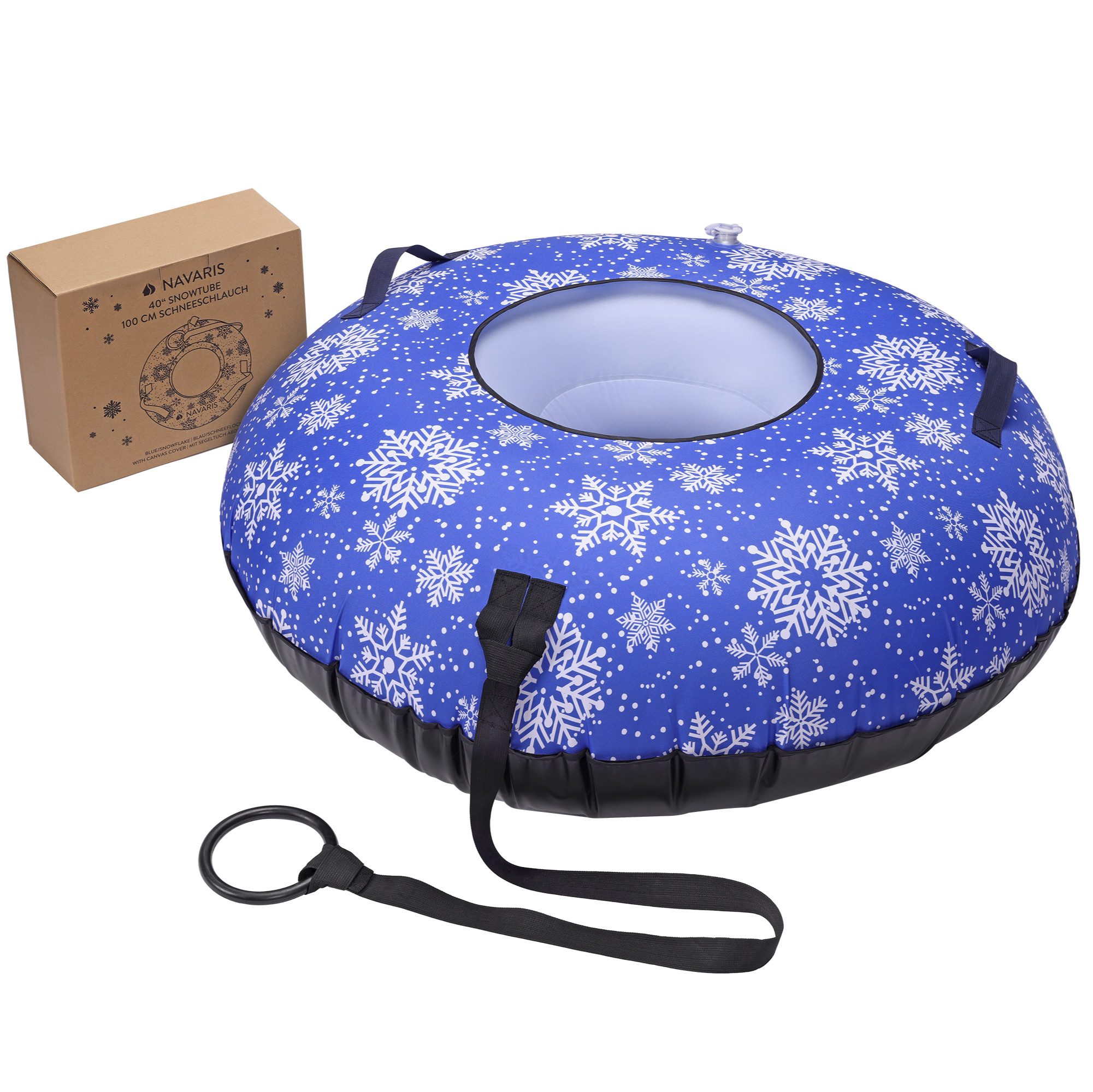 Der Navaris Schneeschlitten bietet das ultimative Rodelerlebnis für abenteuerlustige Nutzer. Dank der praktischen Ventiltechnik lässt sich der Reifen einfach aufblasen. Im aufgeblasenen Zustand erreicht er einen Durchmesser von 100 cm und im unaufgeblasenen Zustand 120 cm.