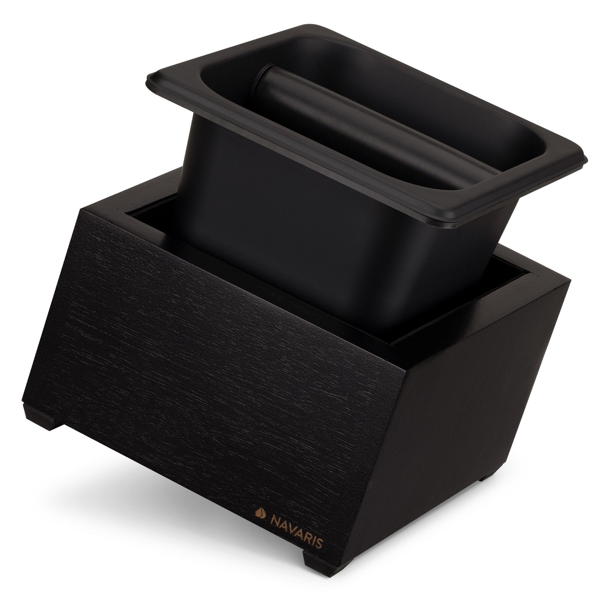 Navaris Tamper Abklopfbehälter Holz 18x17x11cm - für Siebträger - Espresso - schwarz