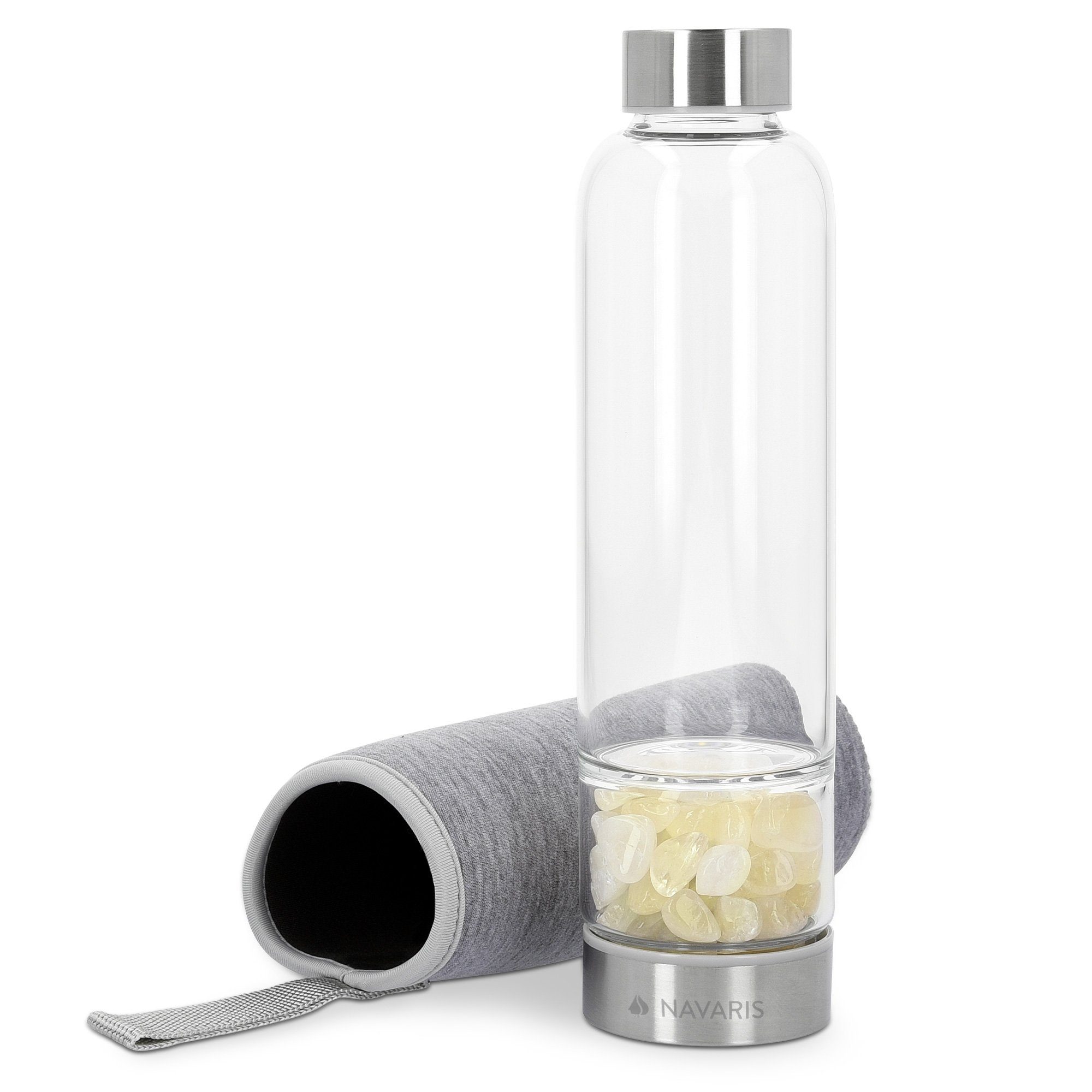 STEIN OPTIK: Die Citrin Mineralsteine werten diese tolle Flasche optisch auf und machen sie zu einem individuellen Begleiter im Alltag.