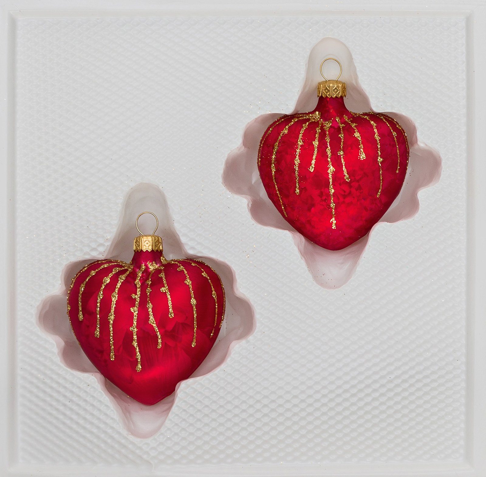 Christbaumschmuck 2 tlg. Glas-Herzen Set in "Ice Rot Gold" Regen