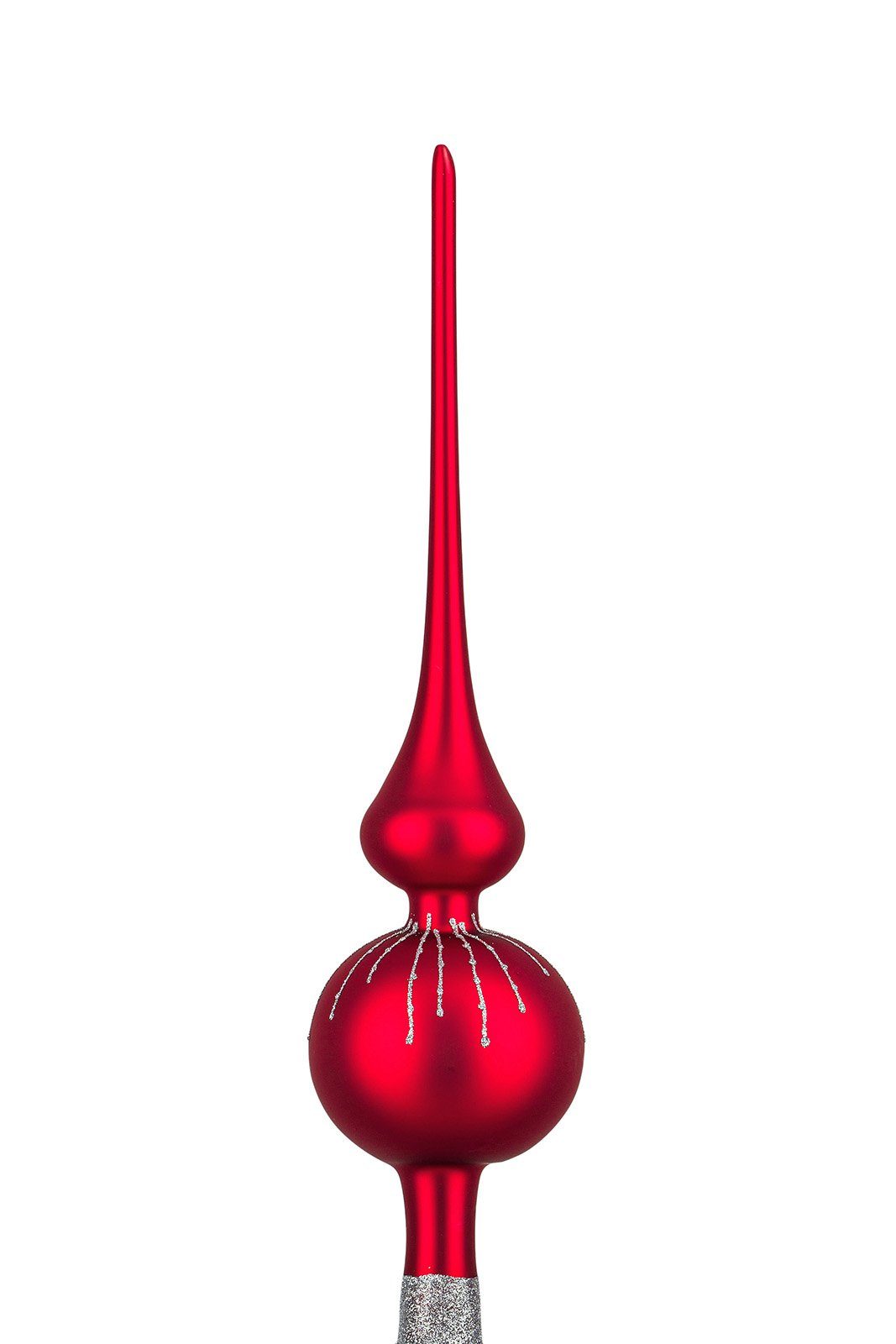 Große Weihnachtsbaumspitze ca.35cm in "Classic Rot Silber" Regen für den etwas größeren Weihnachtsbaum. Zu diesem Dekor haben wir auch ein großes Weihnachtsbaumkugeln Set, passende Glas-Vögel mit echten Federn, Glas Zapfen und 12tlg. Set´s.