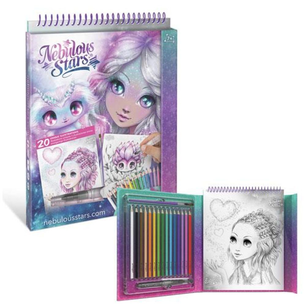 Lieferumfang | 20 handgezeichnete Illustrationen 15 Aquarellstifte Nachfüllbarer Aquarellpinsel Pinsel Techniken der Aquarellmalerei Estrelias ganze Geschichte Anleitung mit farbigen Abbildungen |