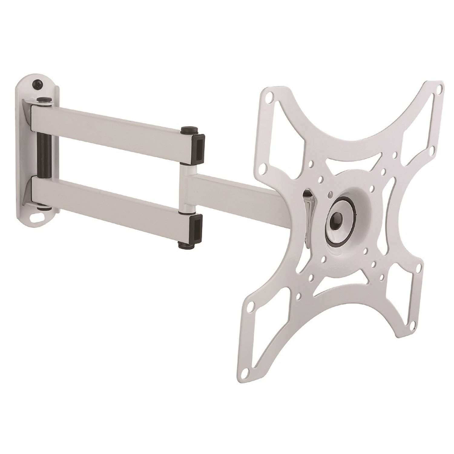 Der Full-Motion-Schwenkarm erreicht ca. 38,2cm Auszug (Entfernung von Wand bis Bildschirm-Rückseite), der Neigungswinkel ist um +/-15 Grad frei verändern. In der horizontalen Ebene schwenkbar und durch das Kugelgelenk um 360° drehbar, um Bildschirme mit Pivot-Funktion zu unterstützen.