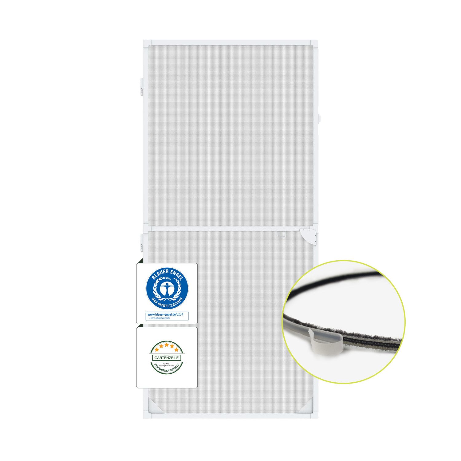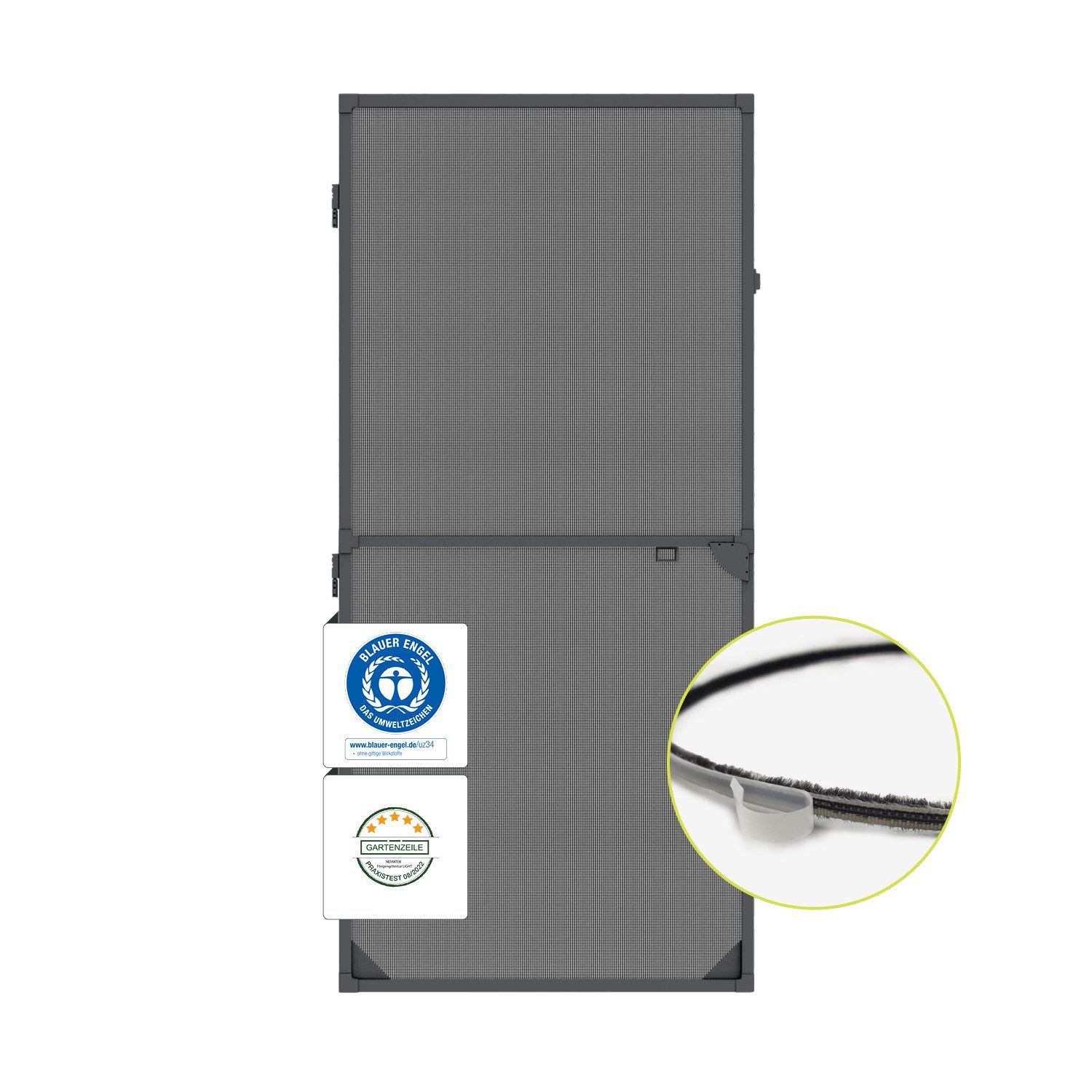 Das Rahmensystem ist aus hochwertigem, stabilem Aluminium gefertigt und in den Farben weiß und anthrazit erhältlich. Das Fiberglasgewebe ist witterungs- und UV-beständig und bietet somit eine langfristige Lösung gegen Insekten. Die Tür ist wahlweise mit und ohne selbstklebender Bürstendichtung ausgestattet.
