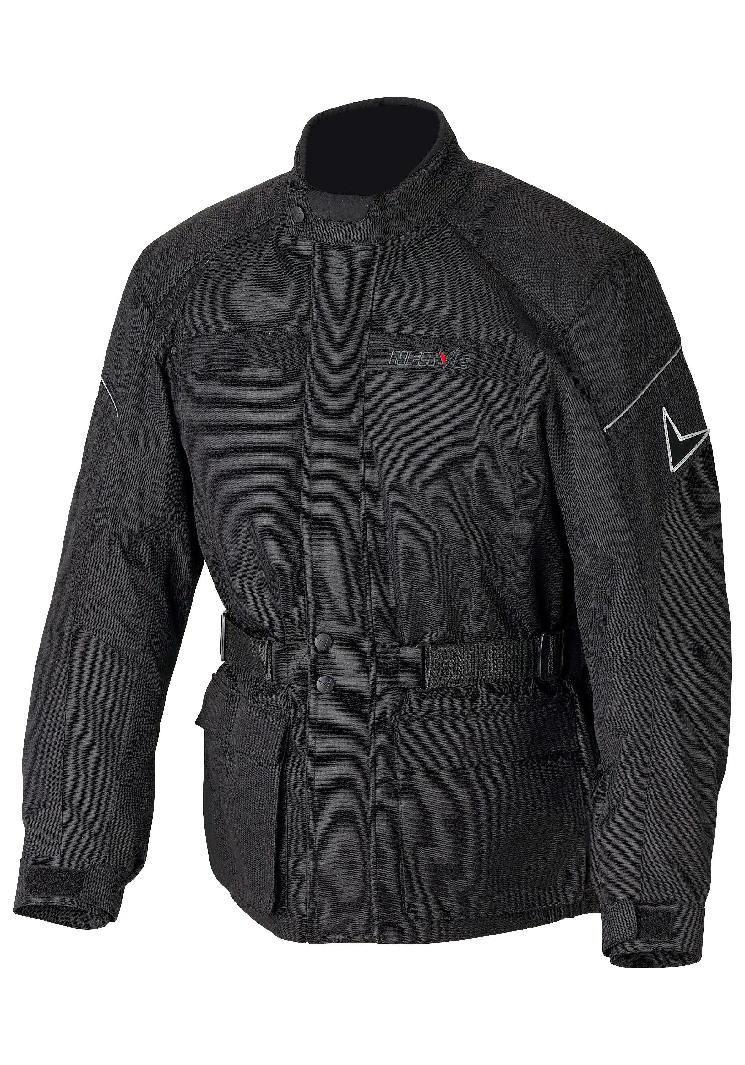 Mit dieser Herren-Tourenjacke »Smart« von NERVE bist du im Berufsverkehr gut gerüstet. Denn dank ihrer Ellenbogen-, Rücken-, und Schulterpolster hilft sie, dich an ausschlaggebenden Körperstellen zu schützen. Sie hat einen gefütterten Stehkragen, die dich bei Wind oder Regen schützt. Der Schnitt mit Raffung in der Taille, und die reguläre Passform, die weder zu eng noch zu weit sitzt, zeichnen das komfortable Design deines neuen Kleidungsstücks aus. Außerdem kann die Weite, je nachdem wie es für dich am komfortabelsten ist, enger oder lockerer verstellt werden. Dank des Polyesters ist die Bikejacke wasserdicht und winddicht. Du kannst sie flexibel an die Temperaturen anpassen, denn das Innenfutter ist herausnehmbar.