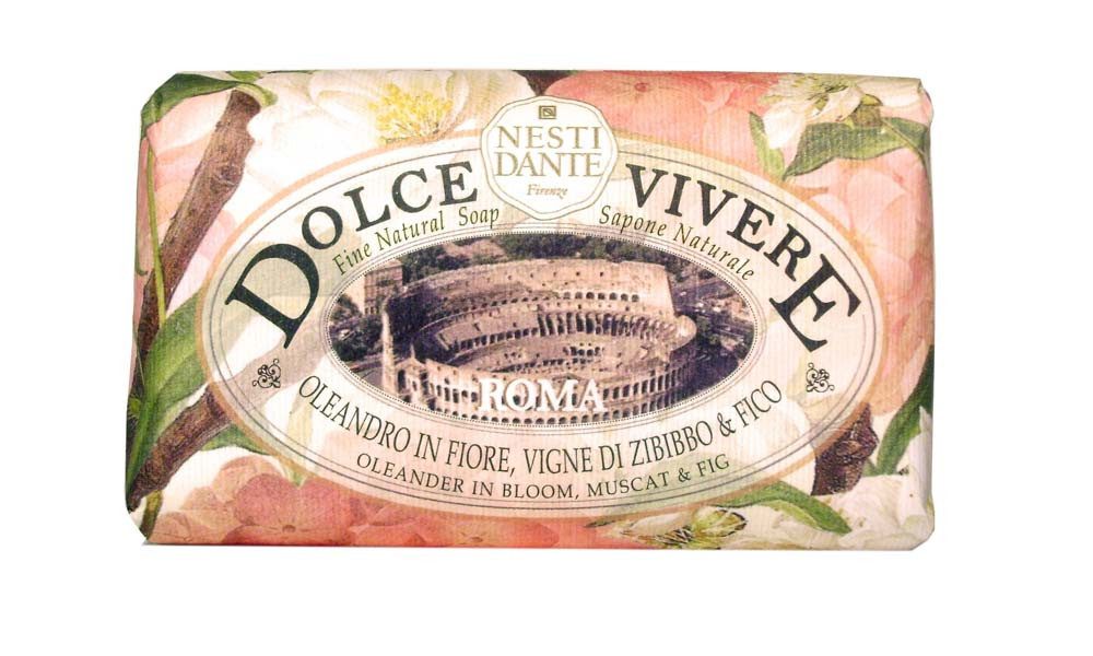 Die Seife Roma aus der Dolce Vivere-Reihe von Nesti Dante verströmt einen warmen und dennoch fruchtig süßen Duft, der sich aus Oleanderblüte, Muskat und Feige zusammensetzt. Dieses Dufterlebnis repräsentiert eine Atmosphäre der ewigen Schönheit, die man zum Beispiel in der Ewigen Stadt Rom antreffen kann. Jedes Seifenstück ist mit einem langanhaltenden, feinen Duft versehen, abgerundet wird jeder Artikel durch die schöne Verpackung. Die hochwertigen Inhaltsstoffe ergeben ein äußerst hochwertiges, pflegendes Endprodukt.