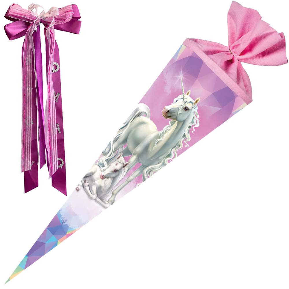 Nestler GmbH Feinkartonagen Schultüte 70 cm mit Schleife Einhorn Märchenwald
