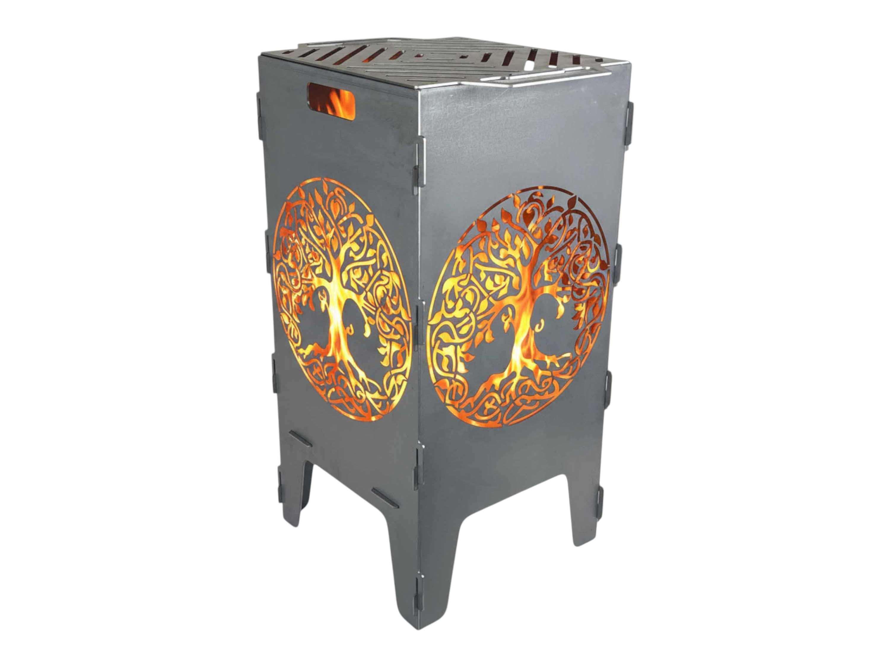 Lieferumfang | 1 Feuerkorb Motiv Lebensbaum, Grillrost, Aufbauanleitung |