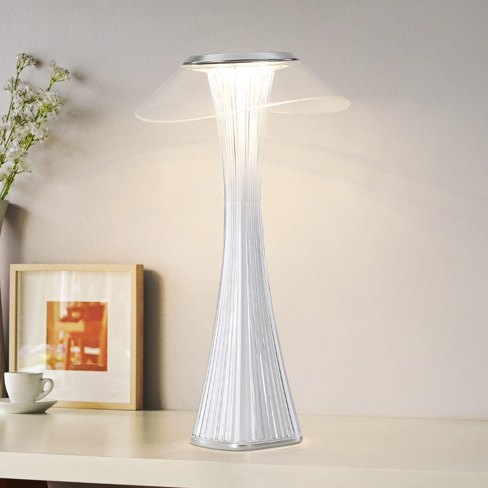 Die Tischlampe besteht aus PMMA (Roségold) Galvanik und 16 Stück. LED-Lichtquellen; eingebauter 1200mAh Li-Ionen-Akku. Das Aufladen dauert in der Regel 4 Stunden, und wenn Sie vollständig aufgeladen sind, können Sie die Lampe bis zu 10 Stunden lang verwenden. Für eine energieeffiziente Beleuchtung wird empfohlen, LED-Lampen zu verwenden. Sie sind eine ideale Alternative zu herkömmlichen Halogenlampen und bieten Energieeinsparungen von bis zu 80%.