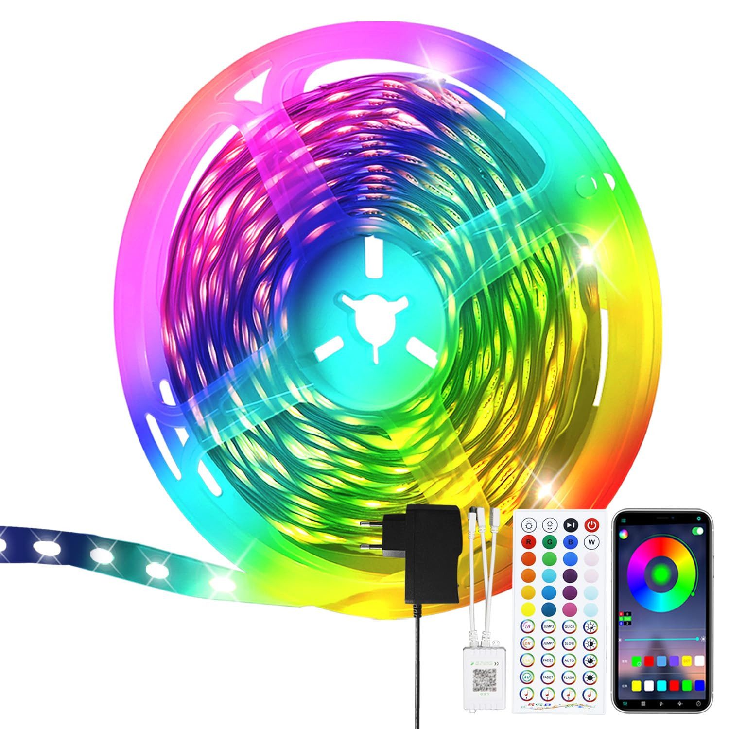 Zweifacher Steuerungsmodus: Der intelligente LED-Streifen kann über die APP oder die mitgelieferte Fernbedienung gesteuert werden. Die Leiste besteht aus hochwertigen 5050 SMD-LED-Perlen, und der Farbwechsel und die Geschwindigkeit der Leiste können mit der APP oder der Fernbedienung innerhalb der Bluetooth-Reichweite ferngesteuert werden.