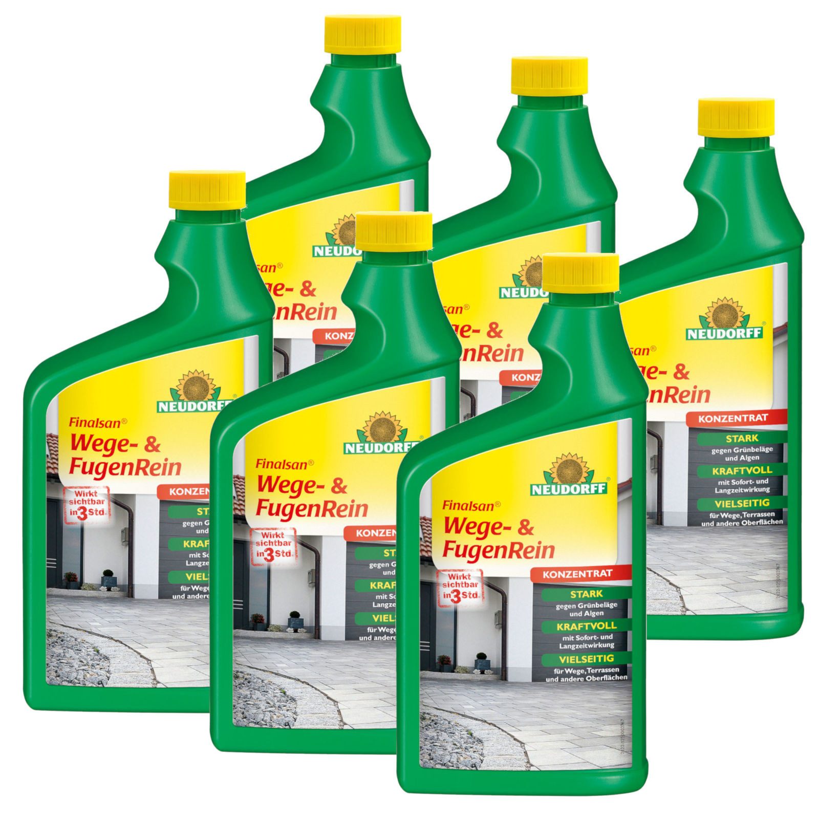 Algen und andere Grünbeläge auf Wegen können zu Materialschäden führen oder eine Rutschgefahr darstellen! Finalsan Wege- & FugenRein ist ein kraftvolles Reinigungskonzentrat aus Fettsäuren, wie sie auch in der Natur vorkommen. Zur Beseitigung von Grünbelägen auf Wegen, Terrassen und Mauern. Selbst hartnäckige Beläge werden gelöst. Finalsan Wege- & FugenRein wirkt schon nach wenigen Stunden, beugt langfristig der Neubildung von Grünbelägen vor und ist biologisch abbaubar. Wenden Sie Finalsan Wege- & FugenRein auf Oberflächen aus Holz, Terracotta, Stein, Glas, Kunststoff oder Metall an. Der kraftvolle Reiniger weist eine gute Materialverträglichkeit auf. In Einzelfällen können auf dunklen Materialien nach der Anwendung weißliche Beläge auftreten, die aber nach Regenfällen rasch wieder verschwinden. Kontakt mit Kunstharzplatten, kupfer- oder zinkhaltigen Oberflächen vermeiden. Bei anderen Materialien, wie z.B. Marmor, Verträglichkeit an verdeckter Stelle prüfen. Bei Kontakt mit Messingteilen kann es zur Ausbildung von Belägen kommen.