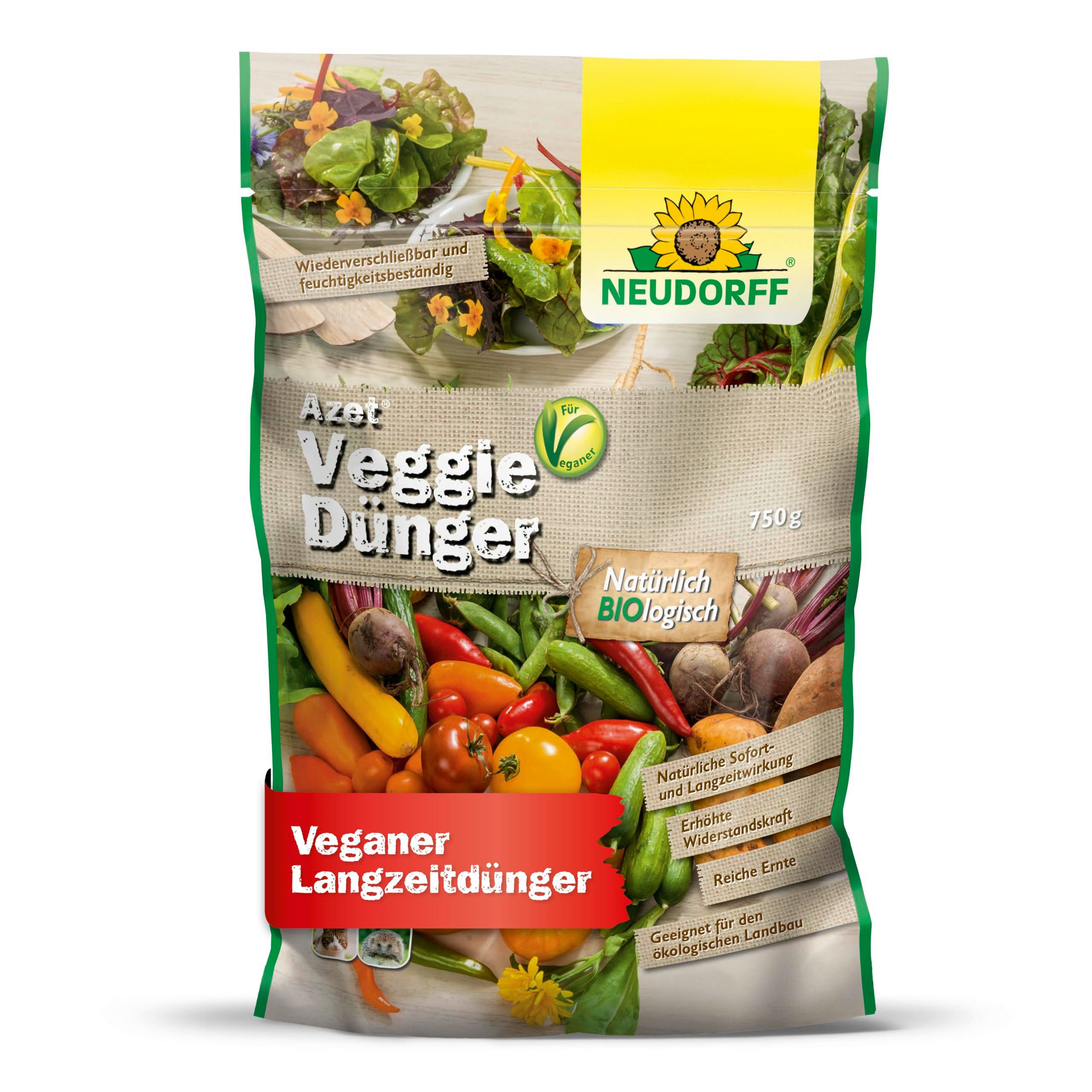 Neudorff Gemüsedünger Bio - Azet VeggieDünger 750 g, 100% pflanzlicher Universaldünger mit natürlicher Sofort- und 100 Tage Langzeitwirkung, für kräftige Pflanzen im Haus und Garten, sorgt für eine reiche Ernte