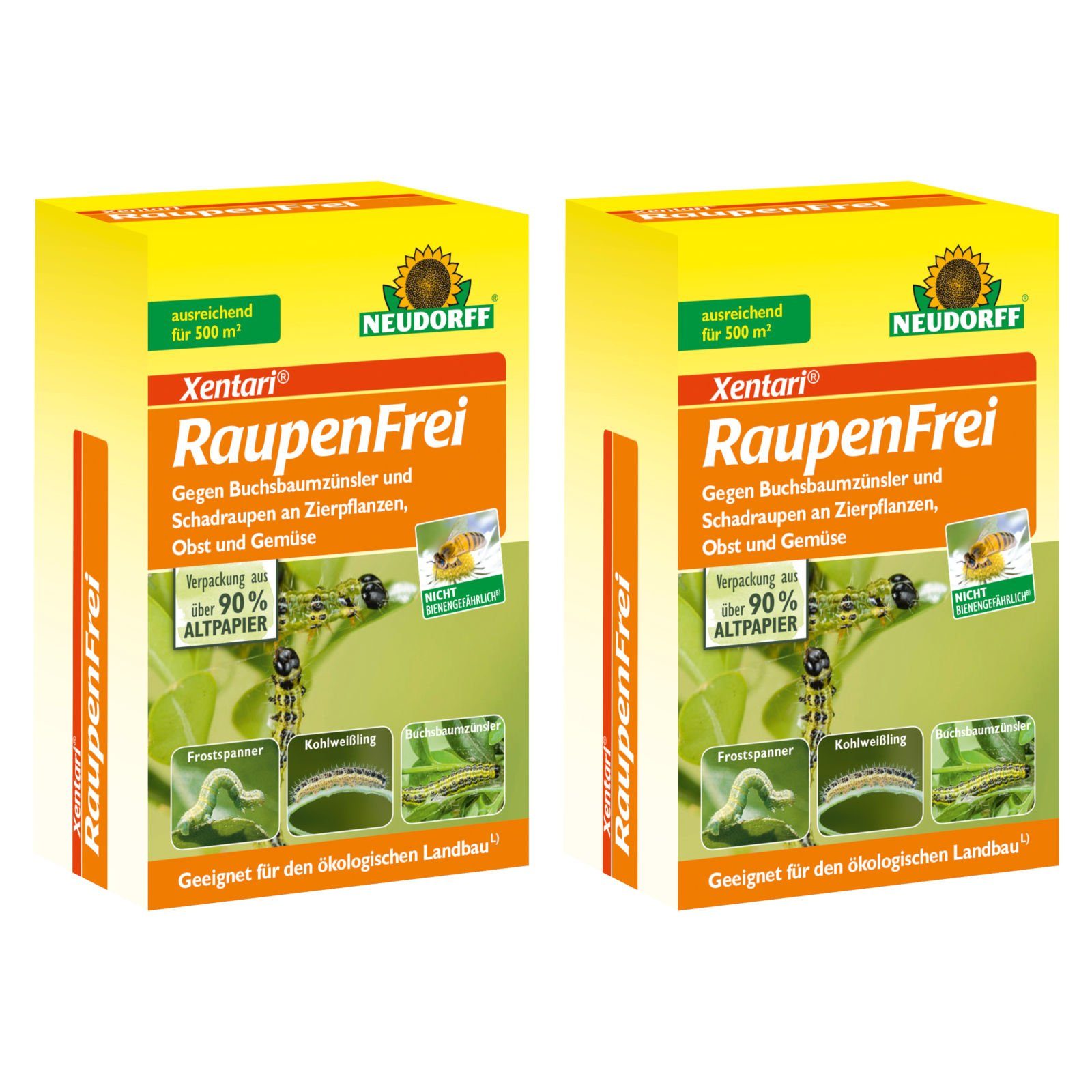 Raupenfrei XenTari ist ein biologisches Präparat zur effektiven Bekämpfung von freifressenden Schmetterlingsraupen. Das Mittel eignet sich sehr gut zur Bekämpfung des Buchsbaumzünslers. Sowohl junge als auch ältere Larven dieses Schädlings können mit Xentari erfolgreich beseitigt werden. Auch sind wichtige Kohlschädlinge wie z.B. der Große und Kleine Kohlweißling, Eulenraupen und die Kohlmotte gut bekämpfbar.