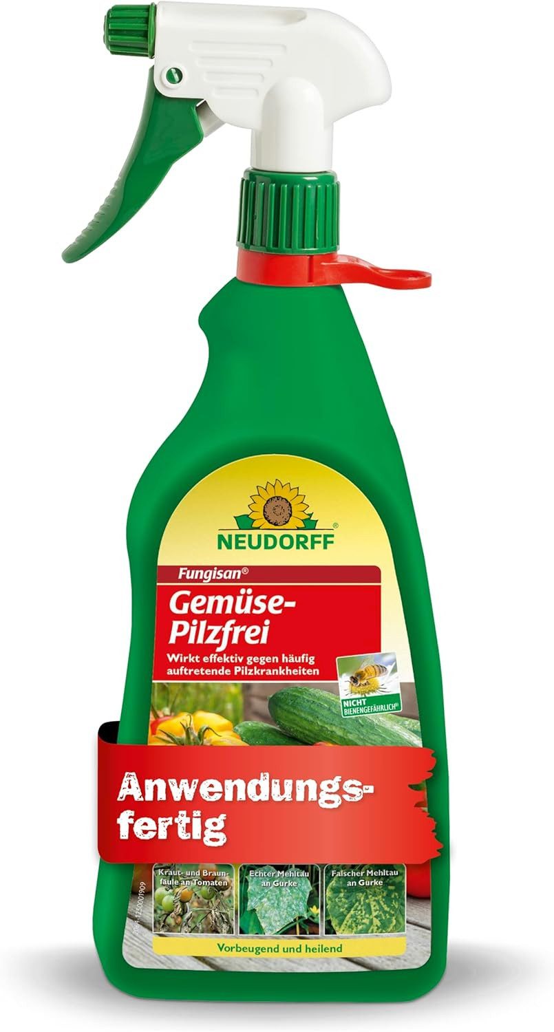 Gebrauchsanweisung | Fungisan Gemüse- Pilzfrei wird bei Befallsbeginn bzw. bei Sichtbarwerden der ersten Symptome gleichmäßig auf die Pflanzen gespritzt. Frühestens jedoch 3 Wochen nach dem Pflanzen. Um ein anwendungsfertiges Spray zu erhalten Flasche gemäß Anweisung auf dem Etikett aktivieren und kräftig schütteln. Nach Aktivierung ist Fungisan Gemüse-Pilzfrei bis zum Ende der Saison haltbar. Vor erneutem Gebrauch kräftig schütteln. Wiederholung der Behandlung: Spritzungen im Abstand von 8 -12 Tagen wiederholen. Maximale Anzahl der Behandlungen 2. Wartezeit: Gurken, Tomaten, Zucchini: 3 Tage; Salat: 14 Tage |