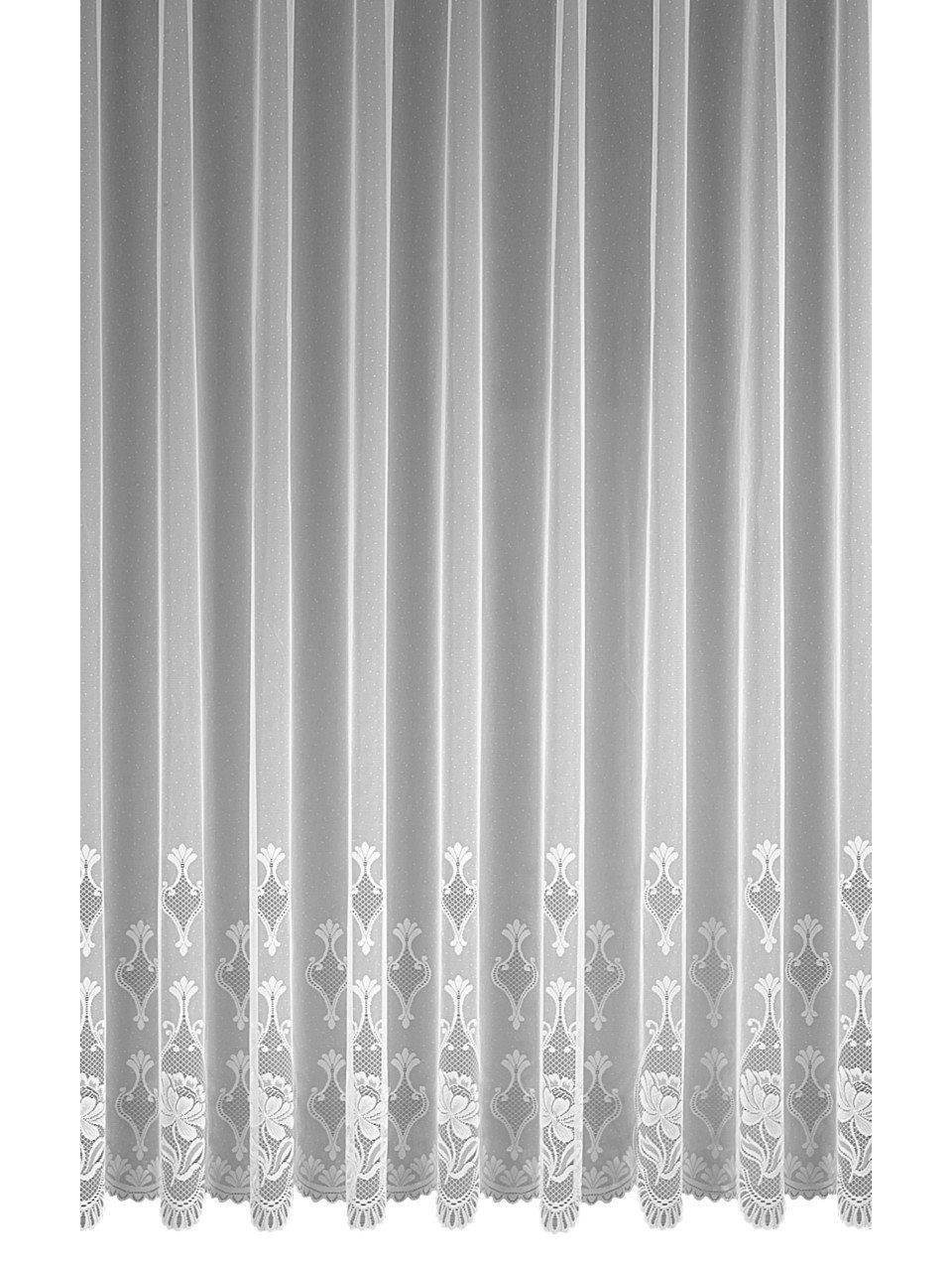 Produktdetails: Farbe: weiß | Maße: 245 x 300 cm | Material: 100 % Polyester | Wirkjaquard | pflegeleicht | waschbar bis 30° C | mit Gardinenband |