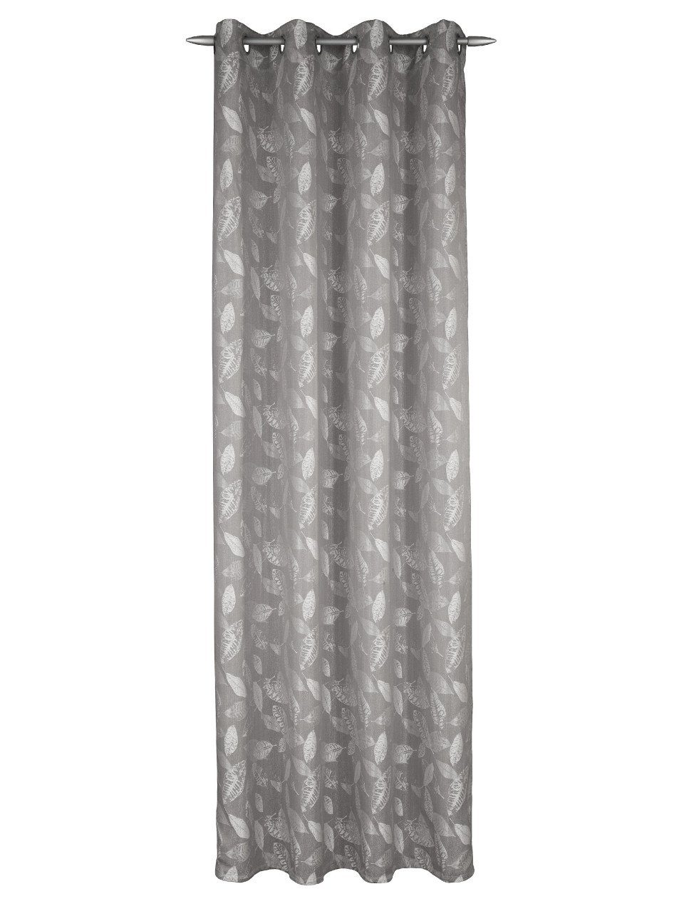 Produktdetails: Farbe: grau | Maße: 135 x 245 cm | Material: 100 % Polyester | Webjacquard Blätter | pflegeleicht | waschbar bis 30° C | mit Ösen |